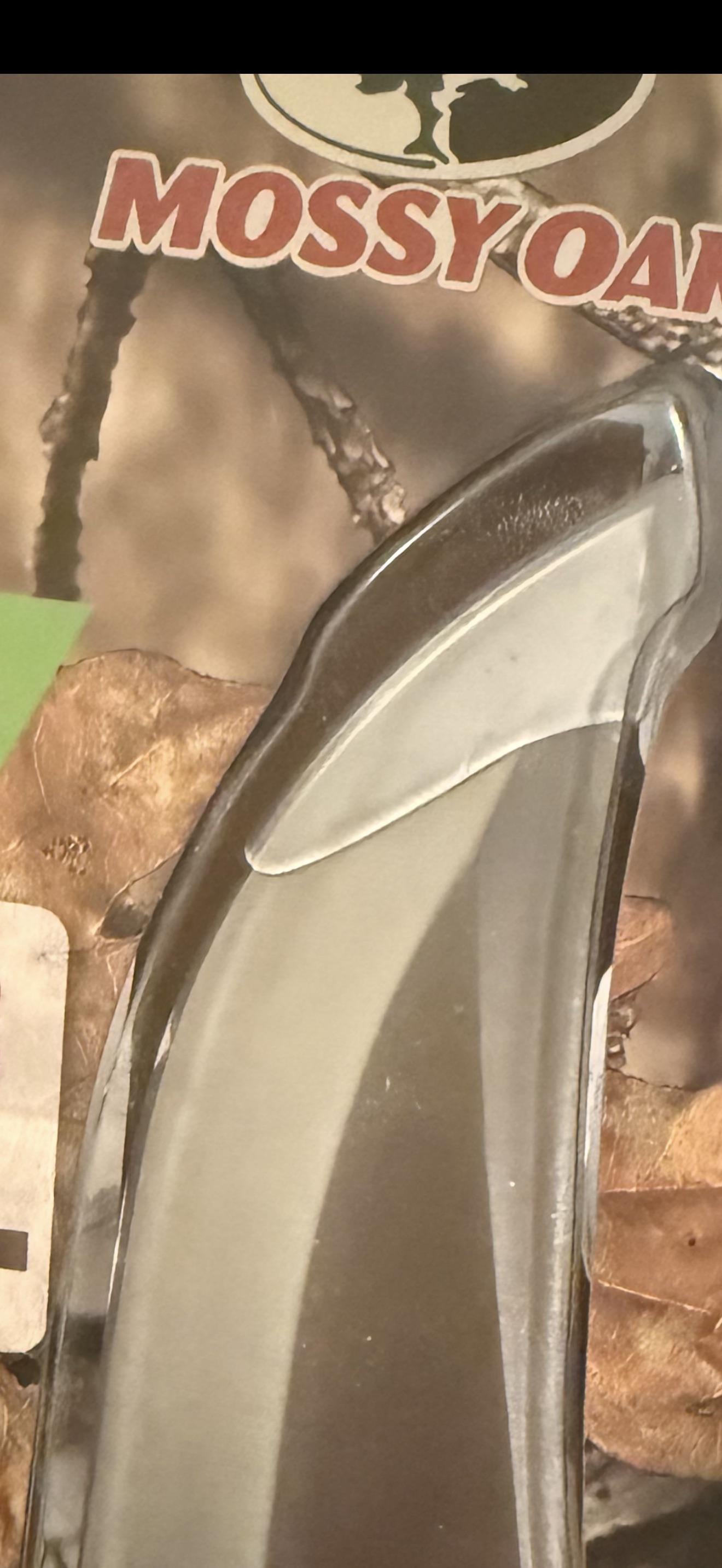 Hi all, I bought a Mossy Oak Bowie from Amazon & noticed the edge has white areas in two spots. I don’t really want to open it (so I can return it in original packaging), but it’s definitely not just a light reflection. I can see the same areas in different angles. Does anyone know what this could be & if I should return it? Sorry I’m such a newb. Thank you for any help 🙂
