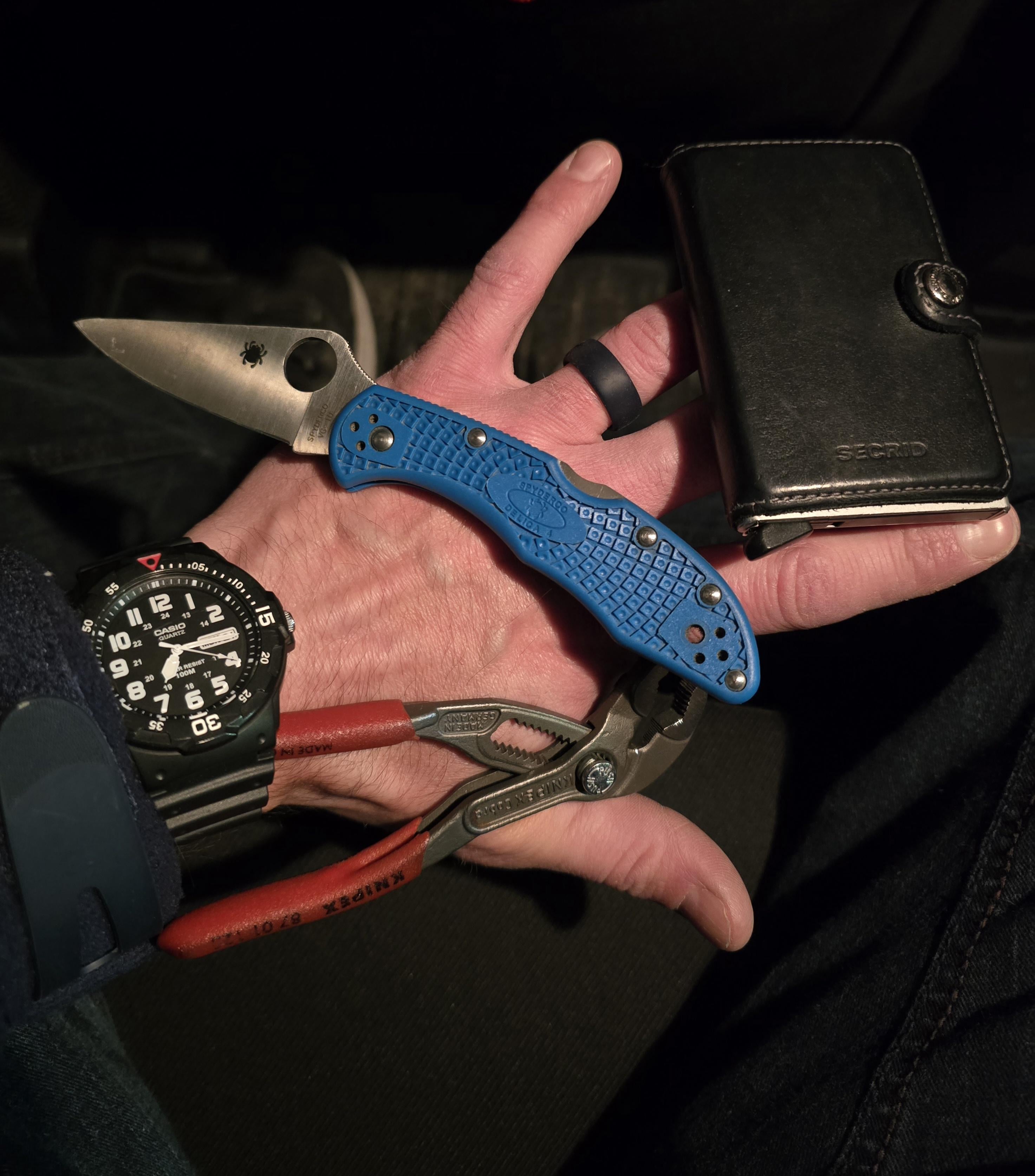 In EDC Last night’s edc December 2, 2025 Casio MRW-200H Knipex cobra pliers Spiderco delica 4 Secrid walletby loghost_84 EDC Prev Post One of the best oem production knives this year /Top ten or so .Stout snappy boi December 2, 2025 Next Post Basic December 2, 2025 Related Posts Small knife big gun? January 17, 2026 All day every day January 17, 2026 Sheepdog Saturday January 17, 2026 1 Comment AutoModerator 2 months ago Thank you for posting to r/EDC! Include a detailed item list (make/model) within **1 hour** of submission. Lists can go in the title, a comment, or the image. Posts without lists will be removed. If you have already provided a list, not further action is needed, thanks | [FAQ](https://www.reddit.com/r/EDC/wiki/faq)*I am a bot, and this action was performed automatically. Please [contact the moderators of this subreddit](/message/compose/?to=/r/EDC) if you have any questions or concerns.*Write A CommentYou must be logged in to post a comment.