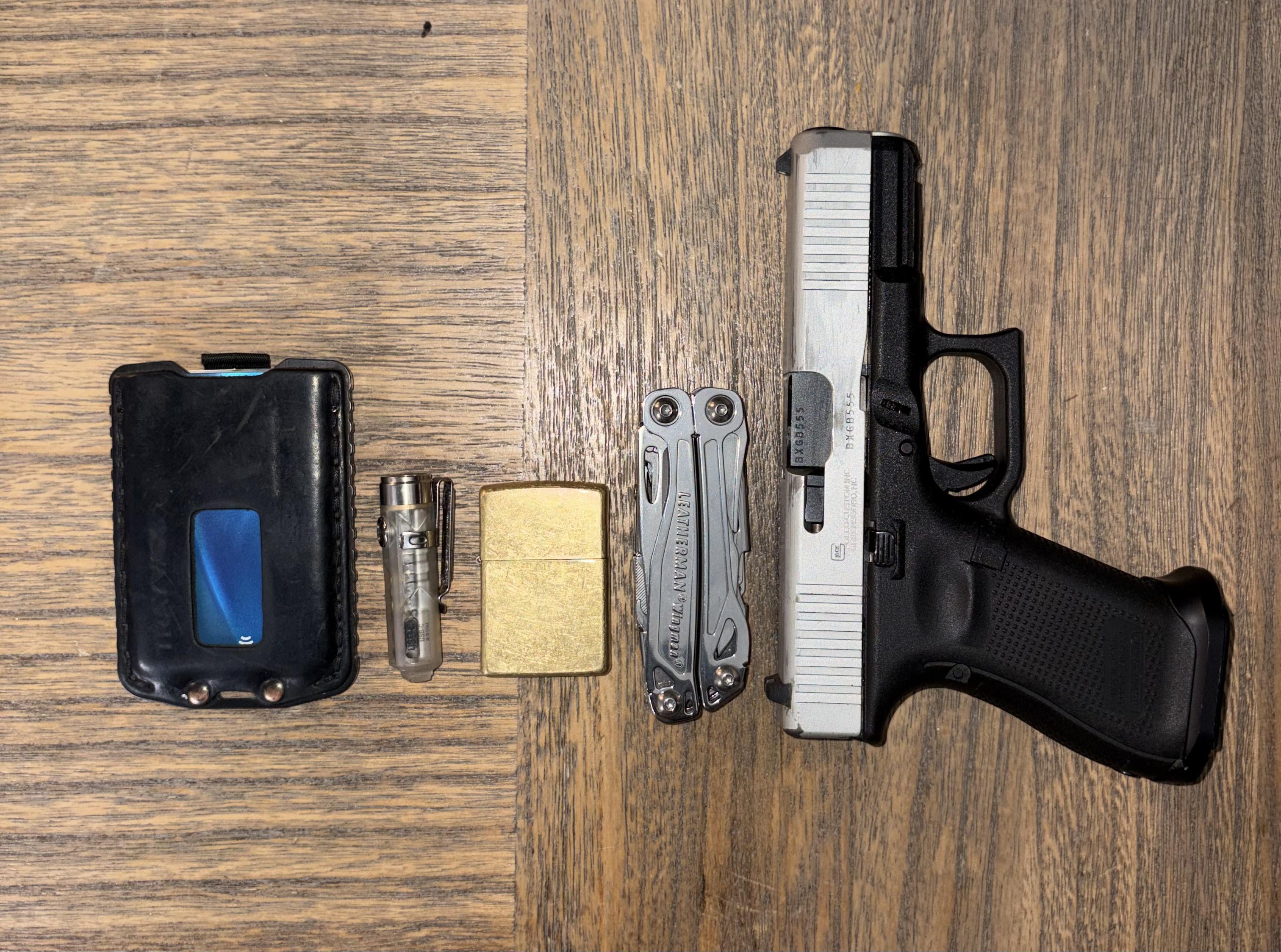 In EDC Basic December 2, 2025 EDCTrayvax wallet RovyVon Aurora flashlight Zippo lighter Leatherman wingman G19 gen 5by Life-Ad-308 EDC Prev Post Last night’s edc December 2, 2025 Next Post My Tuesday carry December 2, 2025 Related Posts Tonight January 17, 2026 Filthy truck, clean(ish) carry… January 17, 2026 EDC today January 17, 2026 1 Comment AutoModerator 2 months ago Thank you for posting to r/EDC! Include a detailed item list (make/model) within **1 hour** of submission. Lists can go in the title, a comment, or the image. Posts without lists will be removed. If you have already provided a list, not further action is needed, thanks | [FAQ](https://www.reddit.com/r/EDC/wiki/faq)*I am a bot, and this action was performed automatically. Please [contact the moderators of this subreddit](/message/compose/?to=/r/EDC) if you have any questions or concerns.*Write A CommentYou must be logged in to post a comment.