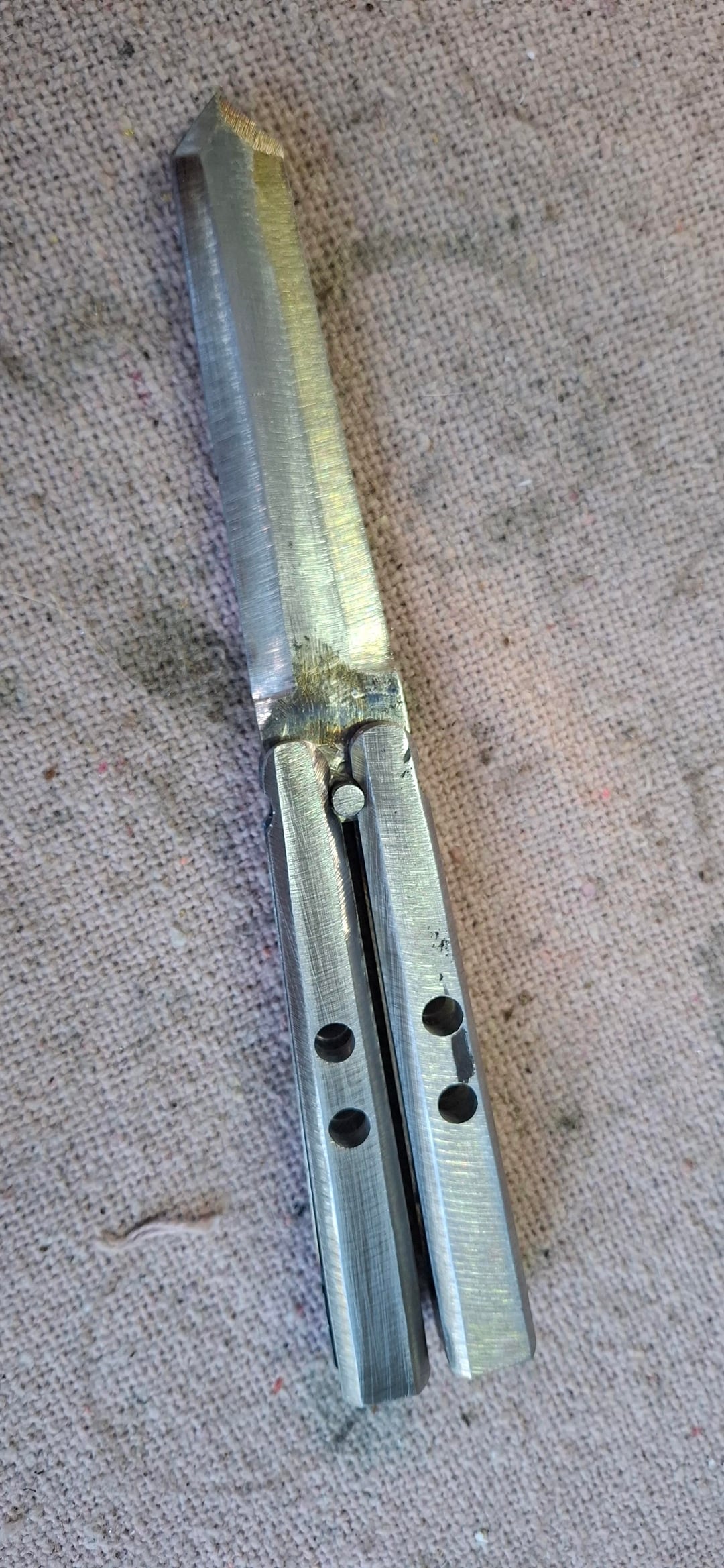 In KNIVES A butterfly knife I made. December 2, 2025 I made this in the workshop because it's incredibly boring at the moment- No work, and I'm tired of sitting all day. It's crude, it would go dull cutting paper and the holes are skew, but what do you guys think?by BobThe-Bodybuilder KnifeKnives Prev Post Sharpening choil? December 2, 2025 Next Post Knife Id December 2, 2025 Related Posts Maker Streams on Whatnot are a win win January 16, 2026 Great Knife January 16, 2026 Finally got my Spyderco Manix 2 in CPM Spy27. January 16, 2026Write A CommentYou must be logged in to post a comment.