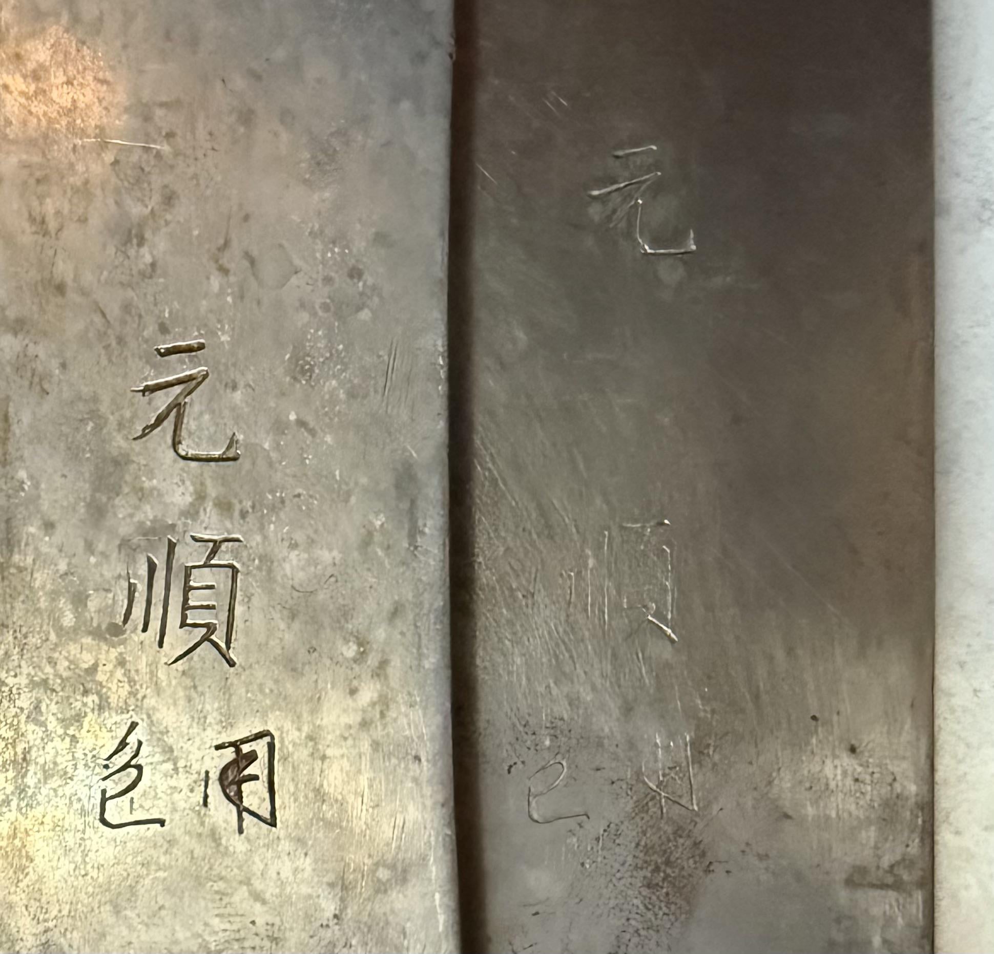 Picked up two knives at a flea market a few years ago. One is a vegetable cleaver and the other is a chef’s knife. I found a similar styled chefs knife that said it was a pattern common in Taiwan. They are carbon steel and take a wicked edge.