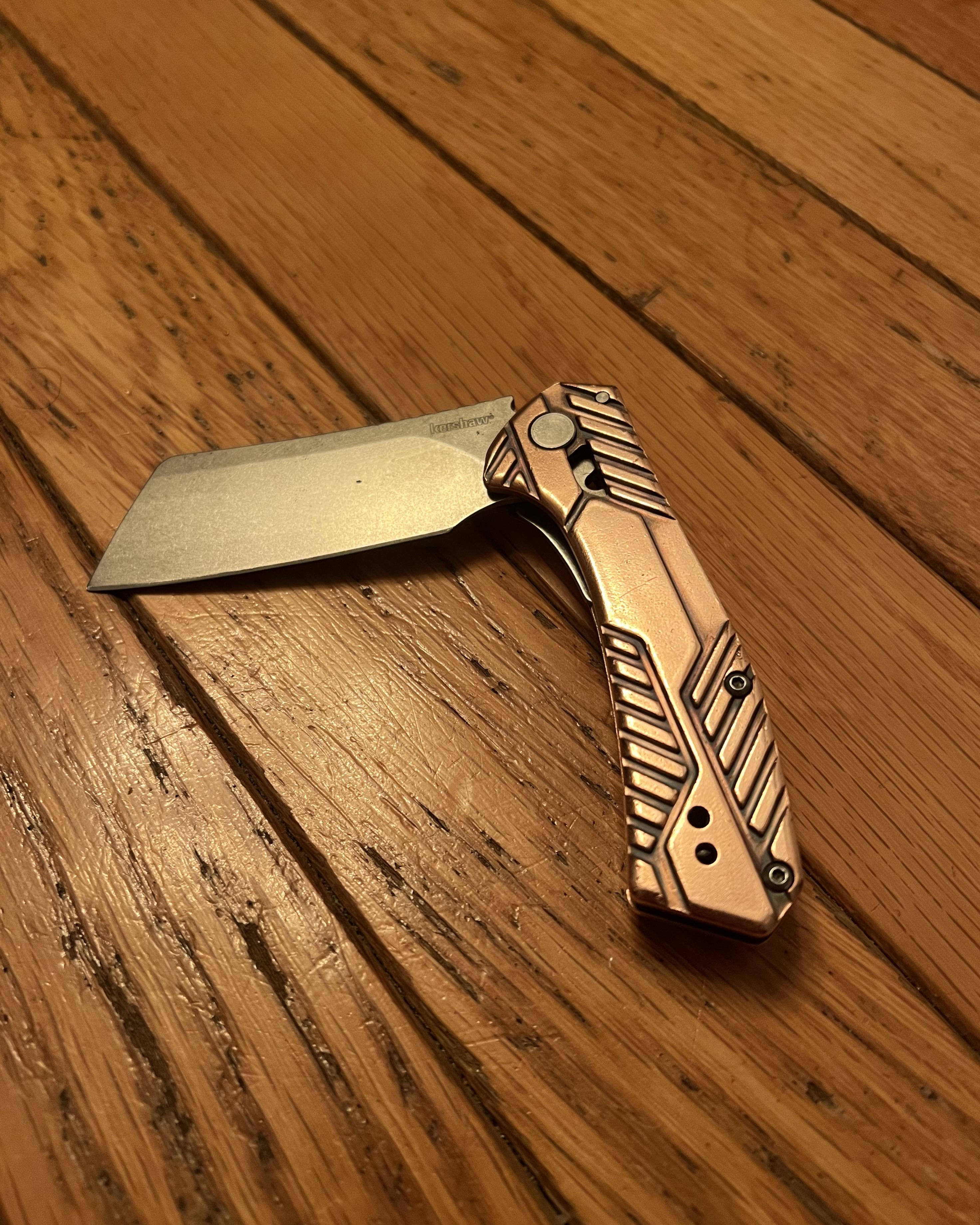 I really like the way the copper looks. It mostly slices open packages and cardboard boxes.
