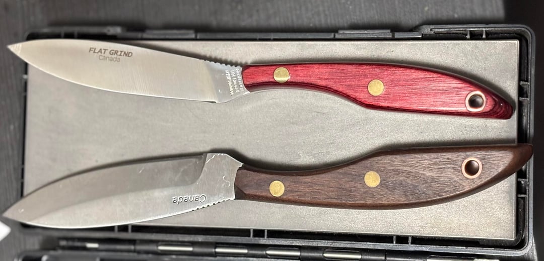 Was looking for a hunting knife before deer season started and I remember seeing a post about the Grohmann knives and some commented they used and liked it for hunting. The history of the company and knife itself is pretty cool and being a maritimer I wanted one. They have a outlet store at their factory in Pictou NS and we were out that way anyways so I stopped in and got a #1 in carbon steel with sabre grind and a smaller bird and trout knife in high carbon stainless steel with a flat grind.