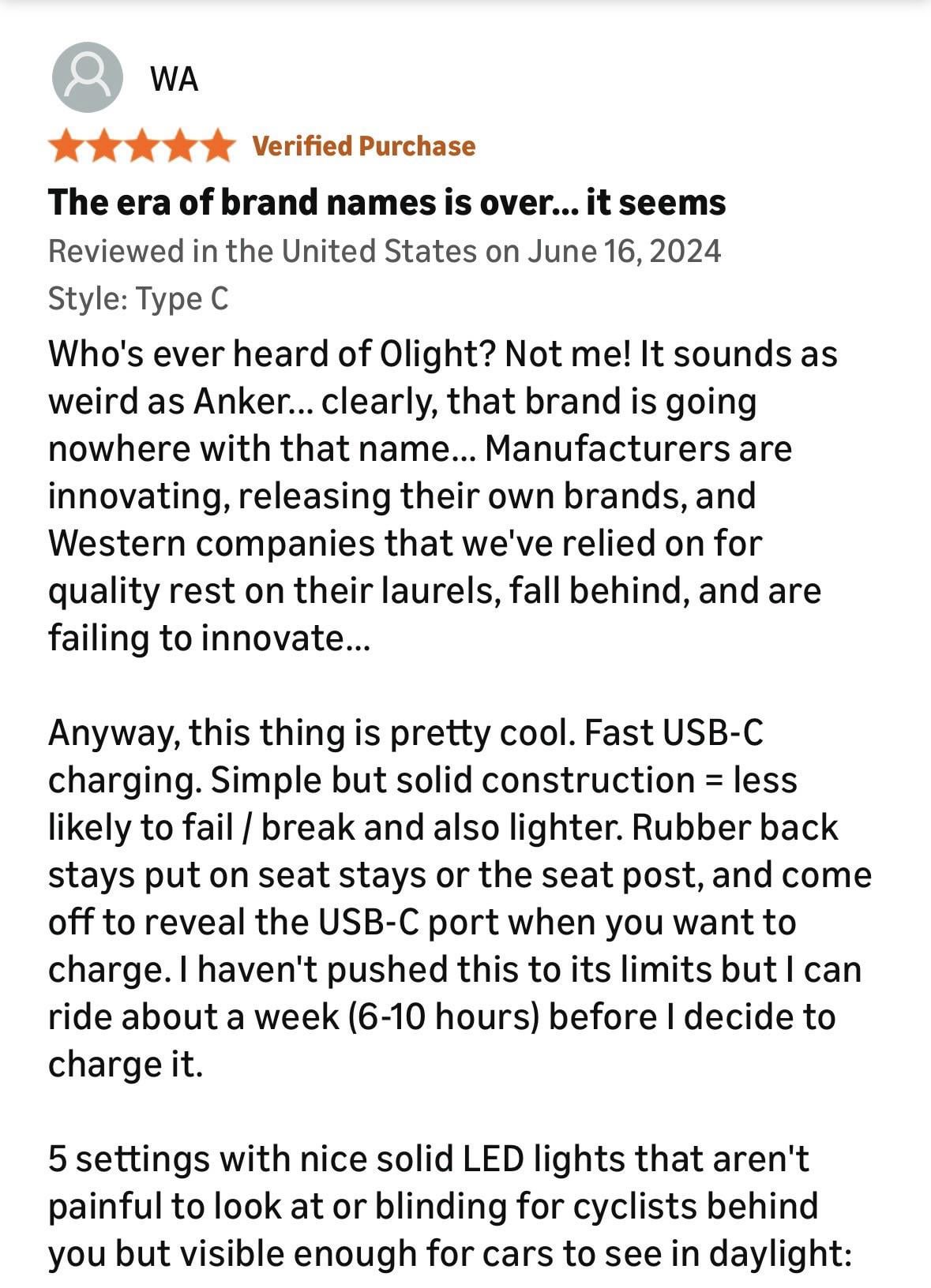 Probably because they never saw an Olight brand light at Home Depot/Lowes or at their local hardware store/bike shop/outdoor store.