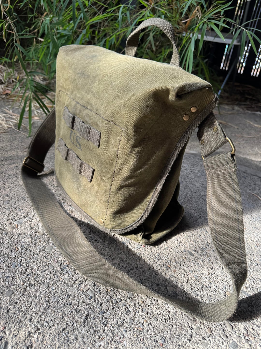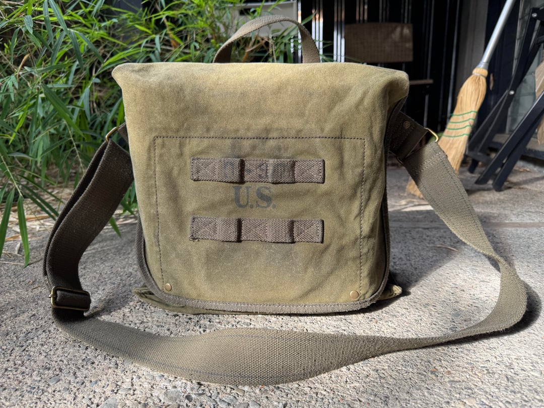 Score. My papa had a small bag stamped US from Korea that he called a musette bag but all my research I can’t find another like it. Possibly a mass kit bag. Used to love that thing, played a lot of army with it. Something magical about that canvas and brass.
