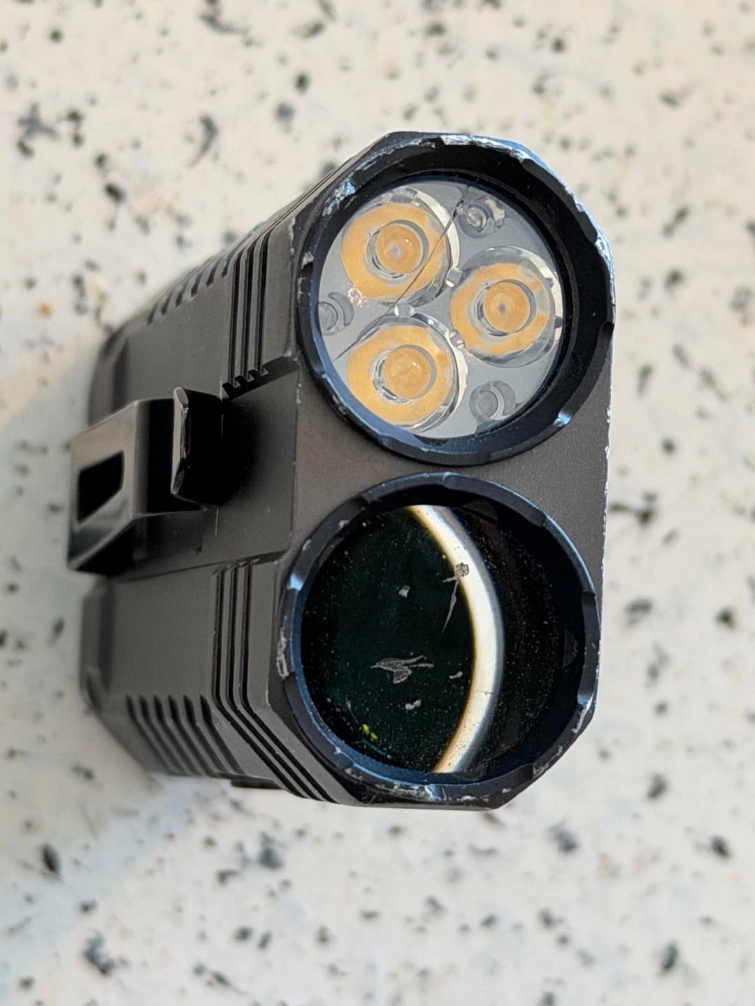 Been using the M2 as my work flashlight for a while now. Really like the versatility of the two lights, just like the M1, and has a reasonable enough size to be in my pocket all day. Was doing some work training a new guy and missed where I set it down then knocked it off the top of a platform, bad move on my part obviously. The flood lens cracked and the thrower chipped, but the light still works fine.