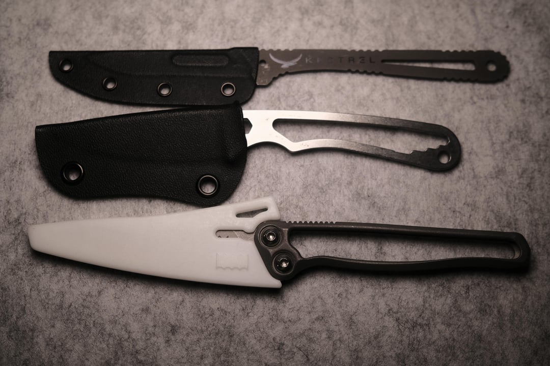 Near the end of the album I included some comp photos of 2 other similar fixed blades that I use regularly, a Rainier Fastpak that lives in my lunchbox, and a Kestrel Mountain Scalpel that lives in my hunting packs kill kit.