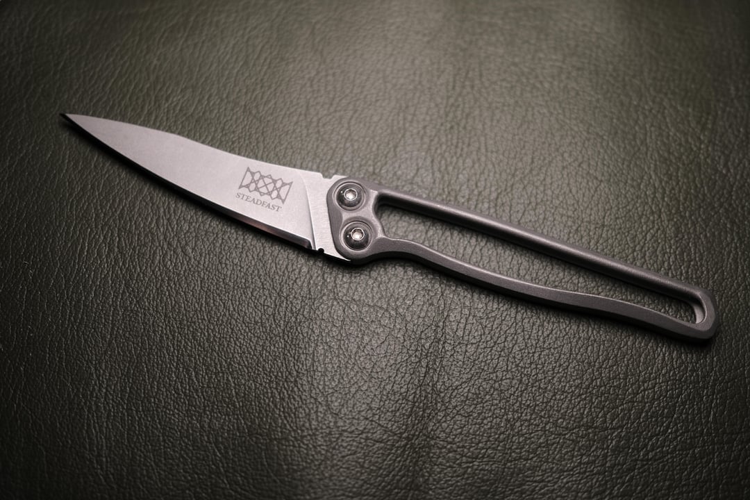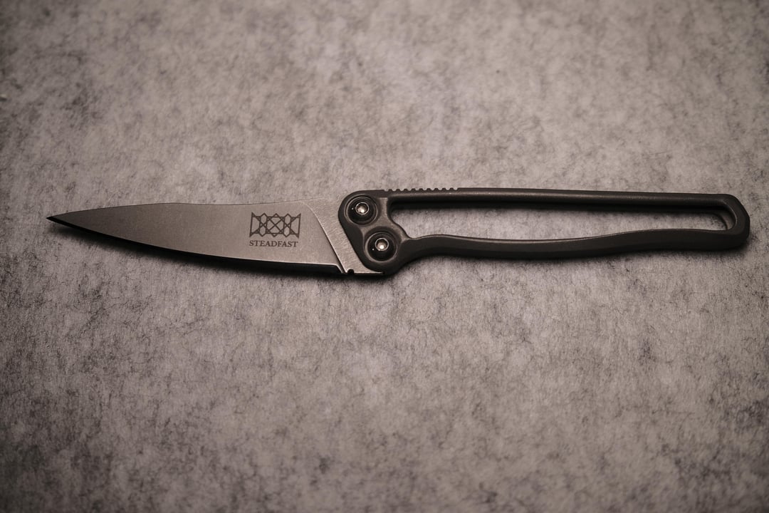 Steadfast ind Seems to be a (very) new guy on the block making knives out of Minnesota state but he's got some insanely cool designs and I am beyond impressed with this little guy so far. I had concerns about blade rigidity from the design, but it is ROCK solid. The handle is just about the perfect thickness for being able to disappear while still being comfortable to hold. My only complaint is that the resin 3D printed sheath rattles a small amount, but I'm having to dig pretty deep to find a flaw. Needless to say, I'll definitely be picking up one of his other models in the future.