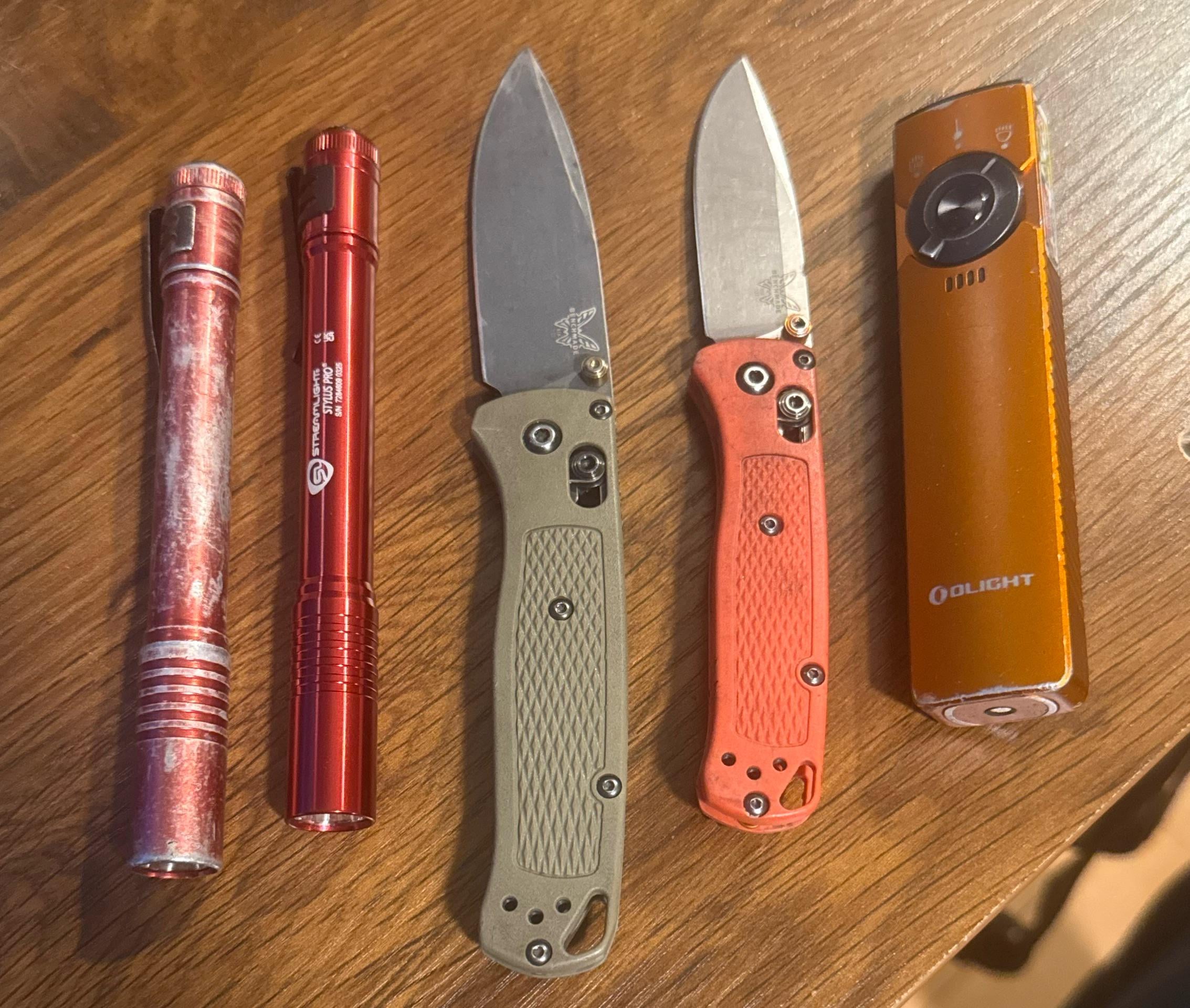 This is my edc of a couple years. I switch between the knives and carry the olight with a stream light for backup. They all take abuse very well