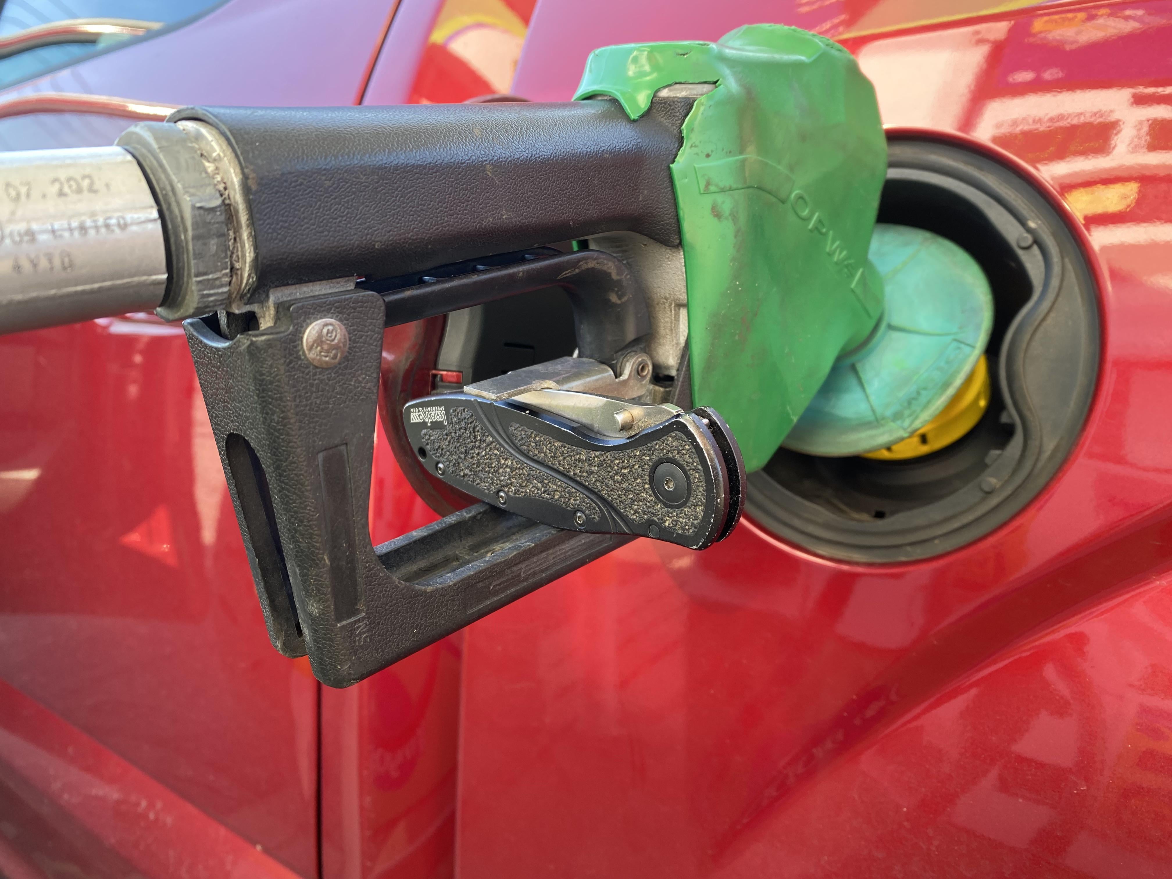I usually stuff my gas cap there when they dont have the tab thingy to keep it pumping