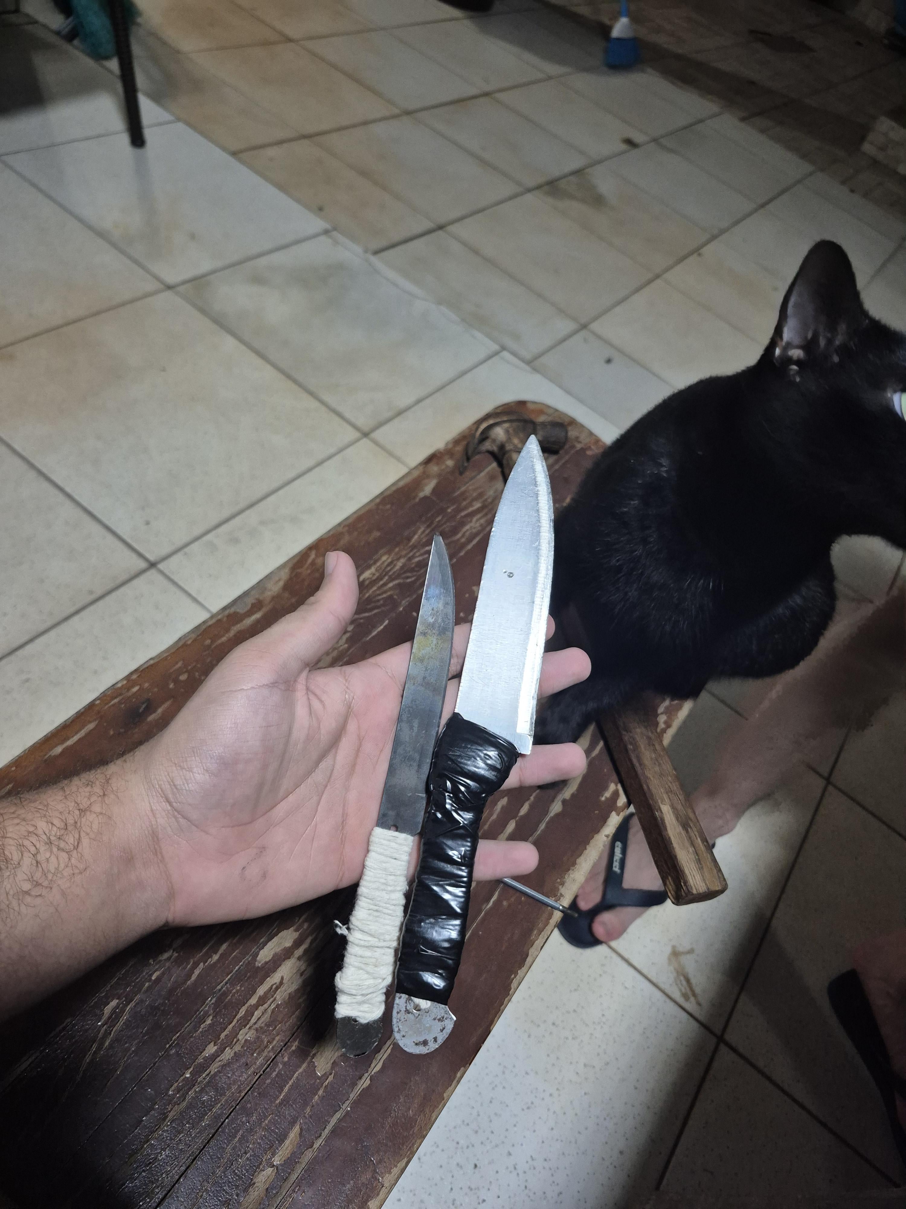 In KNIVES My friend and me finished these 2 throwing knives. (Ignore my cat) December 8, 2025 My friend and me finished these 2 throwing knives. (Ignore my cat) by MATRIX_8686 KnifeKnives Prev Post Got this Gerber BMF at an estate sale for 75$ how much is it worth? December 7, 2025 Next Post I need a flashlight. December 8, 2025 Related Posts New Scales for the K390 Delica January 15, 2026 New 2026 Kershaw knife delivery 1of2 January 15, 2026 Bulldog Calf Ropers January 15, 2026 4 Comments Alpha-Sierra-Charlie 1 month ago Your cell block has tile floors and cats?Just kidding, how well do they work? Ok-Many4613 1 month ago Those are like Chinese kitchen knives with the scales removed & wrapped with tape 🤣😂 Stop lying bro lmao syawlASad 1 month ago That’s a shiv 😂 Havocc89 1 month ago I’d name them Tetanus and Shrapnel.Write A CommentYou must be logged in to post a comment.