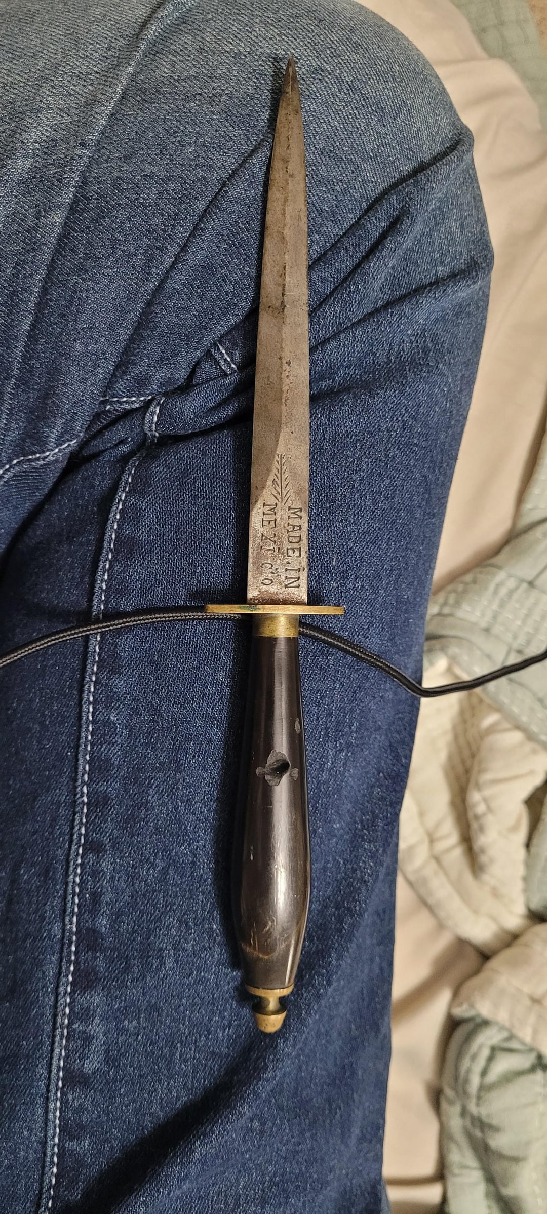 In KNIVES Could anyone help me identify this Stilleto Knife? December 8, 2025 I recently came into possession of a new knife from a family member. I'm not too familiar with historical knives, any information would be helpful.One side of the knife says "T.MUR 0" and the other says "MADE IN MEXICO".by Bastionwolf KnifeKnife ClubKnives Prev Post New knife recommendation? December 8, 2025 Next Post It ain’t much, but it’s honest work. December 8, 2025 Related Posts Aftermarket sheath for Grohmann #4m January 17, 2026 My best entropic ano so far January 17, 2026 Some knives I really like January 17, 2026Write A CommentYou must be logged in to post a comment.