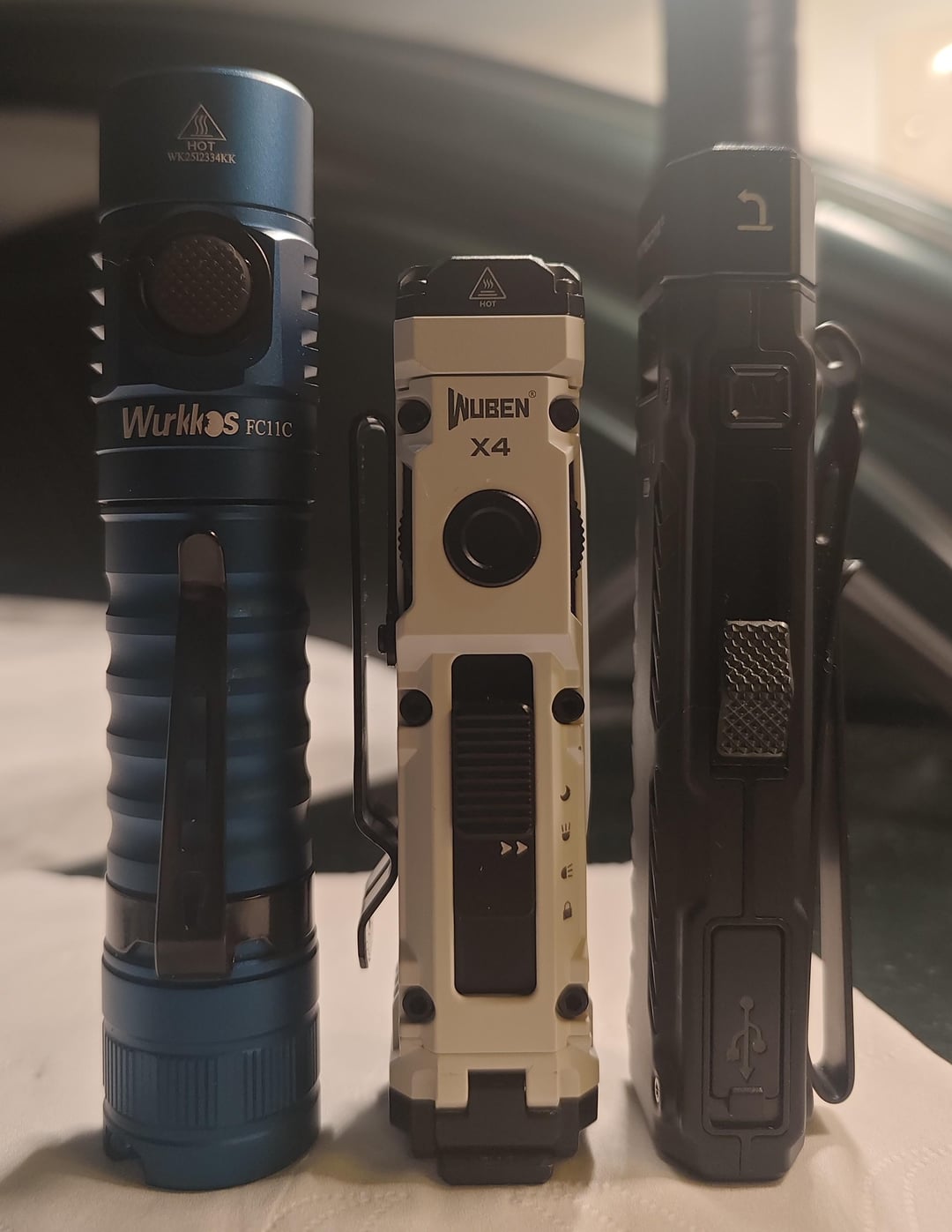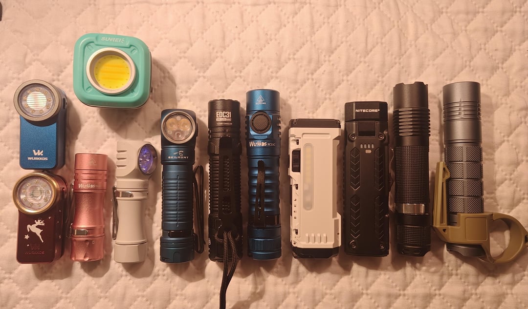 It's very hard to pick up on camera what they are irl. I don't have the equipments or the knowledge either so I'm only giving you guys the size comparison. Compared to some of my, and the more popular edc choices. If you didn't know already, the edc09 only has a battery size of 1100mah.