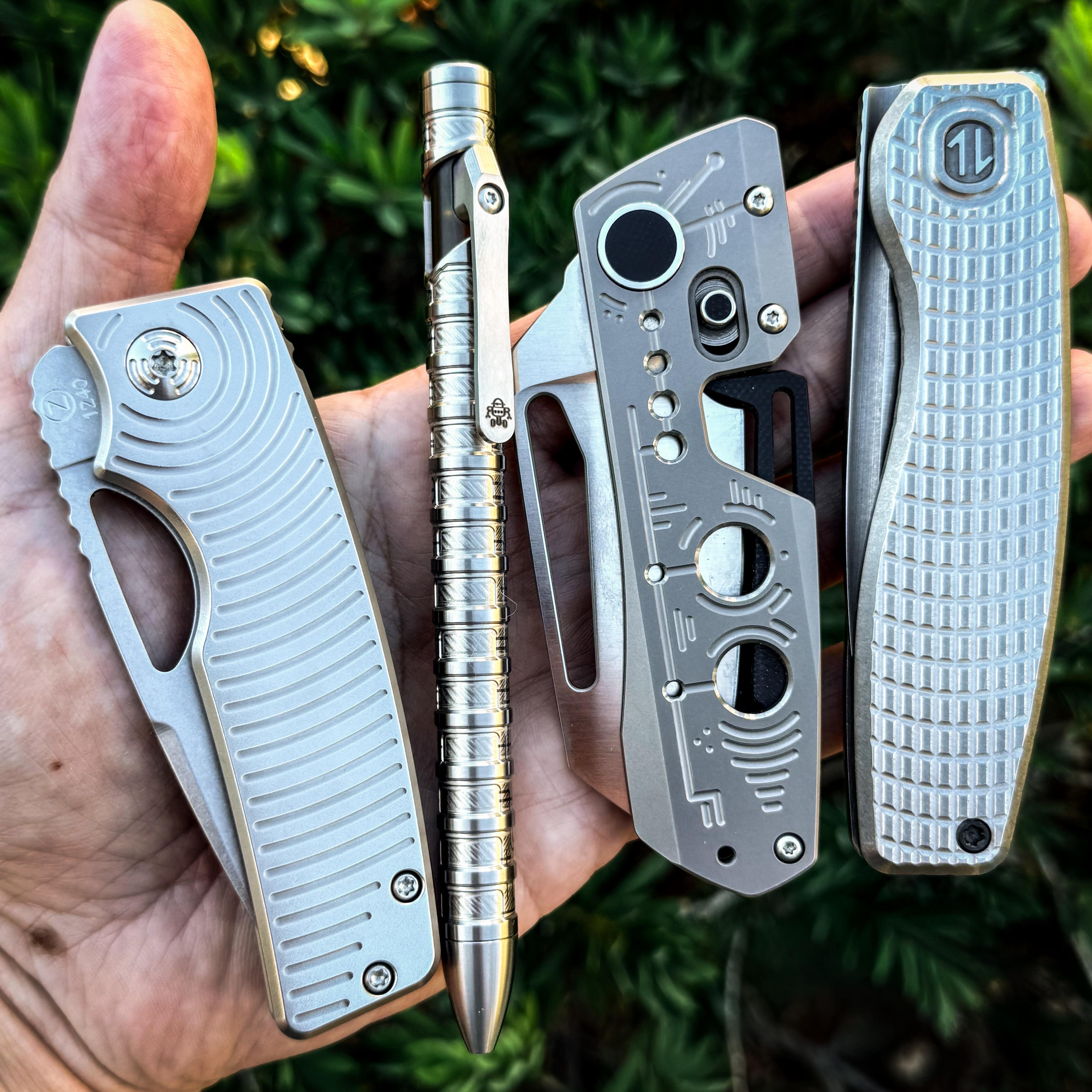 🔪 Winterblade Factor B2 Crop Circles, satin M390, titanium w/ black accents, crop circles and Ultra Silk blast by @cap_city_creations