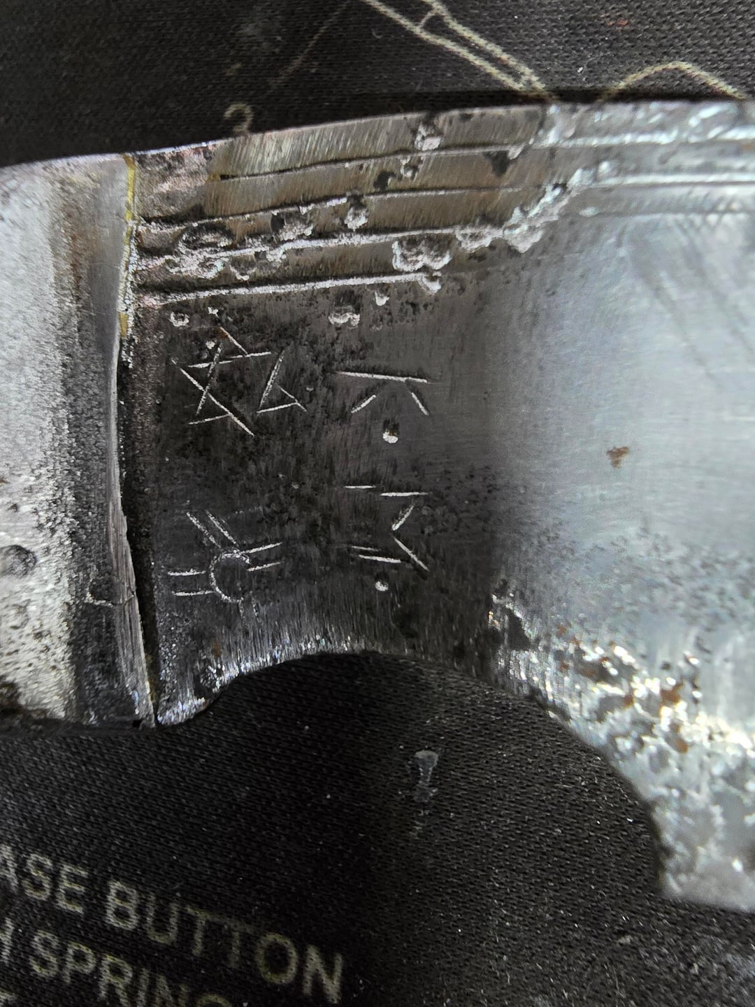 In KNIVES Has anyone seen these symbols before? December 9, 2025 Had this for a few years now but could never find any info or anything else with these markimgs by scooterH1979 KnifeKnife ClubKnives Prev Post [Help Me] Is this BRAUN a good replacement lantern for a couple in the suburbs who needs a good amount of light in the backyard? December 9, 2025 Next Post A fair example of my daily edc. These are my most carried examples of each category as far as gun, watch, pen, fixed blade, and traditional folder go. December 9, 2025 Related Posts Demko AD20.5 and Big Idea Design Overlook make a good pair January 16, 2026 My moms kitchen knife January 16, 2026 Latest Dye Job January 16, 2026 2 Comments scooterH1979 1 month ago https://preview.redd.it/avpt3hbhi36g1.jpeg?width=3000&format=pjpg&auto=webp&s=25b67270346a45f317c011c0af9f500113970e65Not sure why this didn’t post ilikebeer19 1 month ago Himalayan Imports Kerambit. Badly pitted from the look of it. Those markings are from the smith who made it.I think those would be from Kumar, pre-U.B. early 2005 or before.A more recent example:https://preview.redd.it/w565jd6rn36g1.jpeg?width=1536&format=pjpg&auto=webp&s=f2f4c70cdbafa6627b6b46246deda6713a5e12a3Write A CommentYou must be logged in to post a comment.