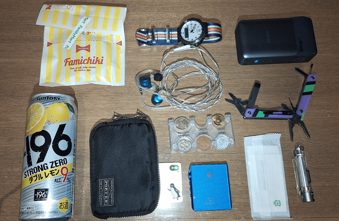 Not in picture: rhe Android phone taking the photo, the USB-C cable, and thefolded plastic bag I've been reusing… because it's holding another Strong Zero 🤡