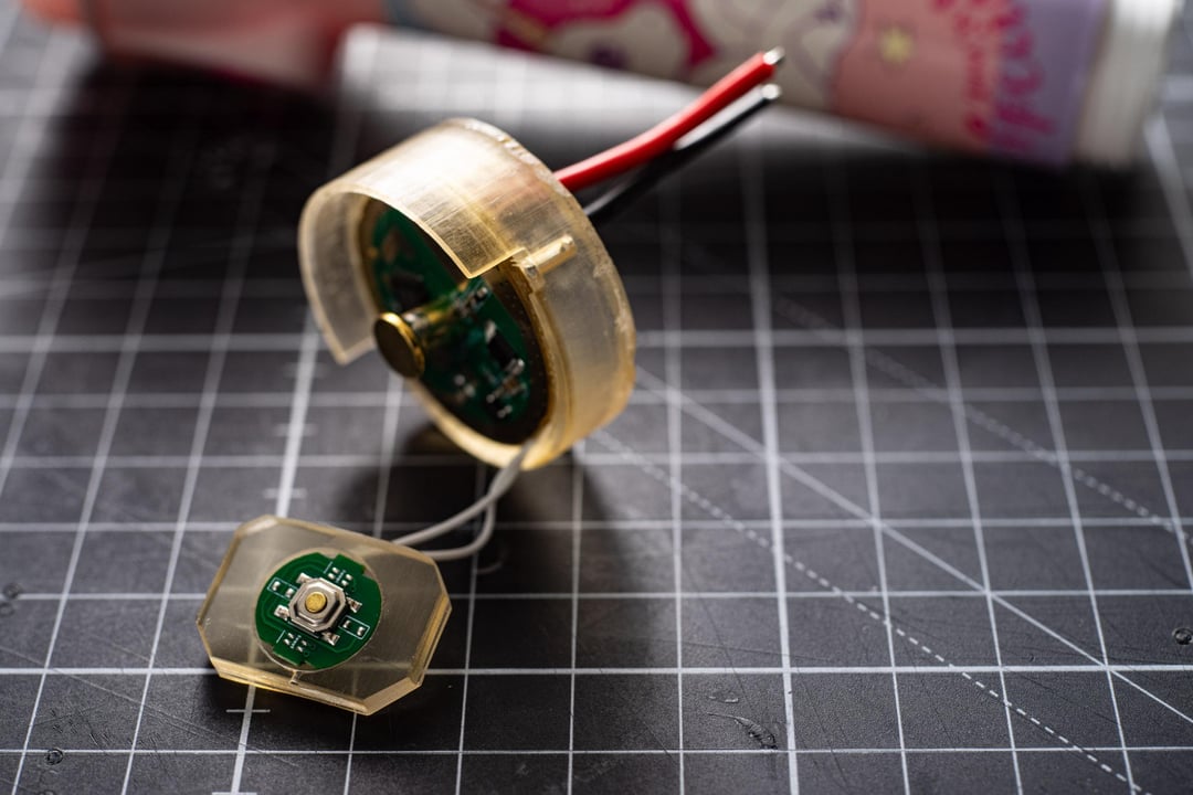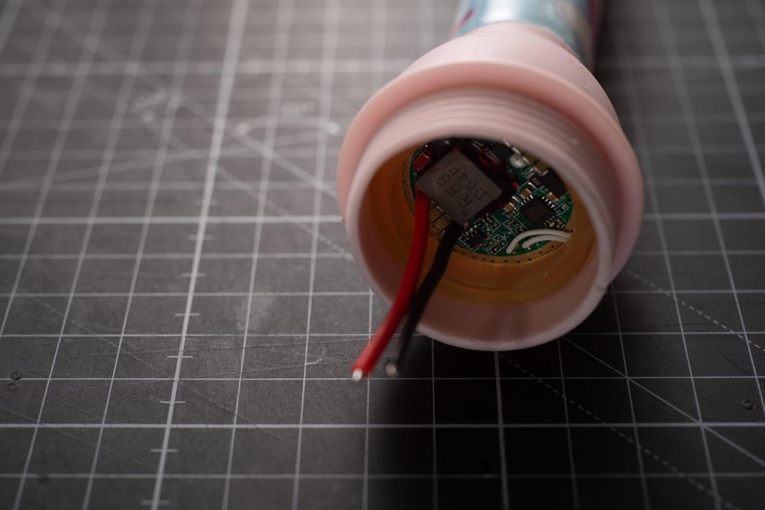 All of the inside parts were binned, I kept only the host and the button. Driver was replaced with a Convoy 20.5A, that's seated in some custom 3D printed holders.