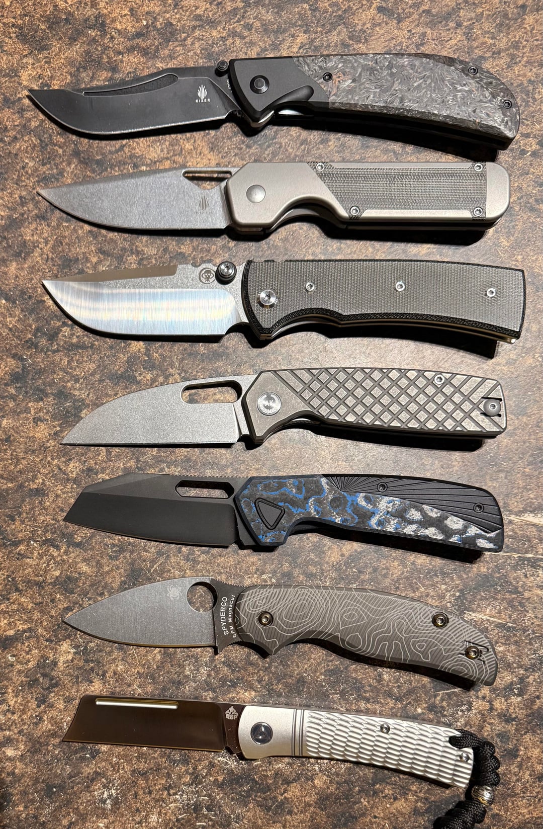I’ve probably had 400ish (just a rough estimate) knives pass through my hands in a lifetime of collecting (I’ve been @ this for 46 years) & in all that time there have been only a little more than a handful that I’ve taken out of their packaging for the very 1st time & was “instantly, completely/totally wowed”; there were 2 Kizers: the Phoenix & a full-sized S35VN & titanium Militaw; my 1st Chaves: a Blue Label Rendencion 228; my 1st Asher: a Spiro wharnie, w/cross-hatched titanium; my Spyderco Sage 5: CPM Magnacut & AWT topo milled aluminum scales, Lynch deep carry clip & anodized H/W; and my QSP Hedgehog (a jigged titanium framed slippie w/an M390 cleaver blade).