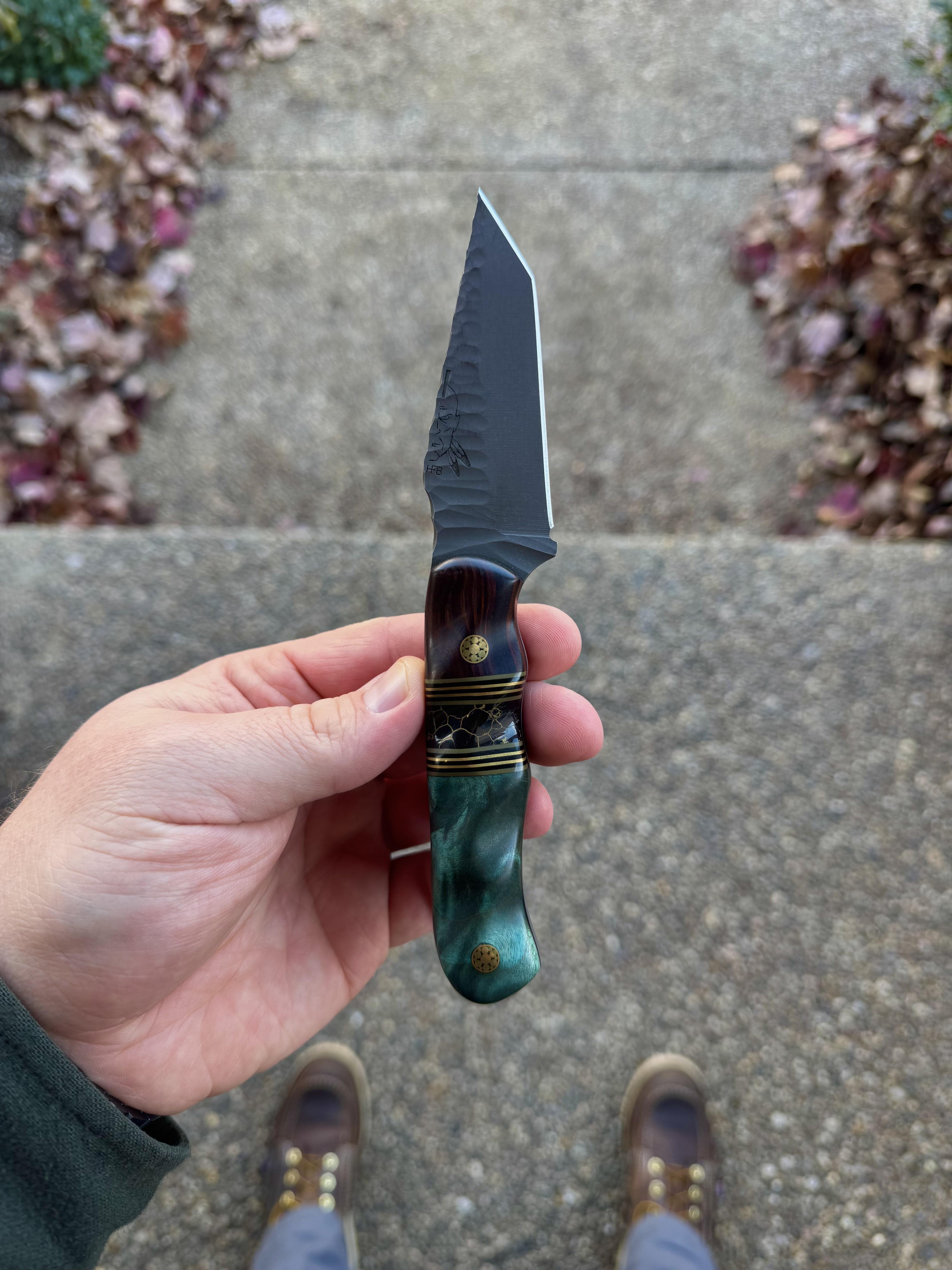 In KNIVES Tanto Tuesday: Half Face Blades One-Off Tanto #NKD December 10, 2025 Tanto Tuesday: Half Face Blades One-Off Tanto #NKDby FICKxDINGERZ KnifeKnives Prev Post Tanto Tuesday: Half Face Blades One-Off Tanto #NKD December 10, 2025 Next Post Tanto Tuesday: Half Face Blades One-Off Tanto #NKD December 10, 2025 Related Posts Thoughts on this knife? January 15, 2026 How do I mirror polish this by hand? January 15, 2026 Thursday’s duo. . . Vosteed Raccoon. . . Spinnaker Haas January 15, 2026 2 Comments FICKxDINGERZ 1 month ago Half Face Blades One-Off Tanto /// Ironwood /// Onyx w/ gold web /// Black Ash Burl /// Mosaic Pins Forty6_and_Two 1 month ago Beautiful work! Congrats!Write A CommentYou must be logged in to post a comment.