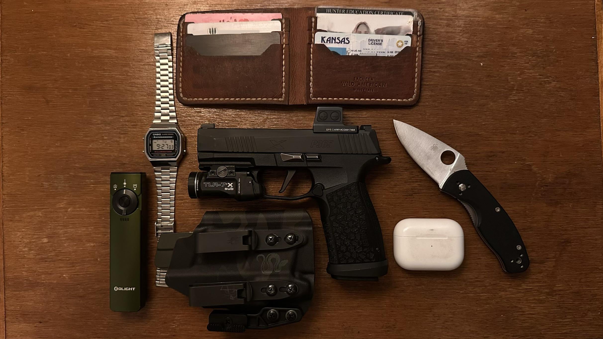 In EDC EDC as a 22 y/o December 10, 2025 Pocket dump of my essentials!Spyderco Persistence AirPod pros Sig p365 xmacro w/ eps carry & tlr-7x Superstition concealment iwb holster Olight Arkfield Pro Lacuesa whitetail deer leather walletby svgelopez EDC Prev Post Here’s a change of pace from guns and knives. Urbex EDC. December 10, 2025 Next Post Anyone have any experience with the Kydex sheath for the raptor? I’m debating it as it looks slimmer December 10, 2025 Related Posts Mom of 3 EDC January 15, 2026 EDC in public transportation January 15, 2026 Today’s Pocket Dump January 15, 2026 2 Comments AutoModerator 1 month ago Thank you for posting to r/EDC! Include a detailed item list (make/model) within **1 hour** of submission. Lists can go in the title, a comment, or the image. Posts without lists will be removed. If you have already provided a list, not further action is needed, thanks | [FAQ](https://www.reddit.com/r/EDC/wiki/faq)*I am a bot, and this action was performed automatically. Please [contact the moderators of this subreddit](/message/compose/?to=/r/EDC) if you have any questions or concerns.* pcapp7 1 month ago Solid EDC! Ever consider carrying any medical?Write A CommentYou must be logged in to post a comment.