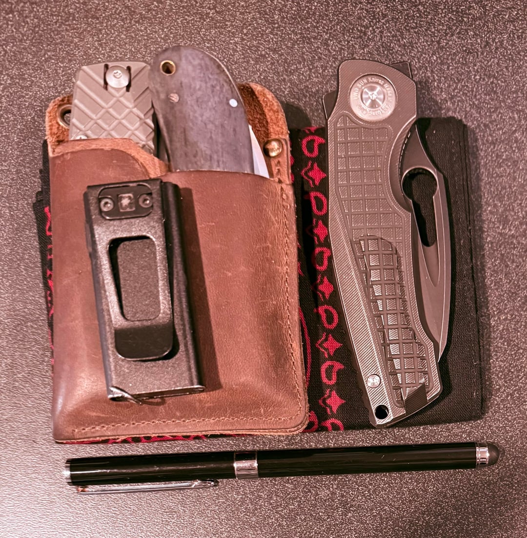 In KNIVES Why Hello … Whatcha carrying today? December 10, 2025 Wharnie Wednesday for me, L—>R:TwoSun — TS559. Asher — Spiro. RoseCraft — Clinch River Swayback.That’s all I’ve got today … How about you all?Wishing all y’all a great day!👊🏼by OG-BigPapa-KJ KnifeKnives Prev Post Knife identification – Wooden handle, “C” emblem and a very small logo December 10, 2025 Next Post There are more and more of them. December 10, 2025 Related Posts New knife haul from Denver Stock Show January 16, 2026 First posting. My knife collection! January 16, 2026 15n20 Chef fly around with black G10 and white G10 liners and brass pins. January 16, 2026 1 Comment Quiixoticelixer 1 month ago https://preview.redd.it/zk6dekboed6g1.jpeg?width=2268&format=pjpg&auto=webp&s=22f8213acaaa533a6439d8142cea70a788a6dae7Kizer Megatherium today, beautiful carry you got there!Write A CommentYou must be logged in to post a comment.