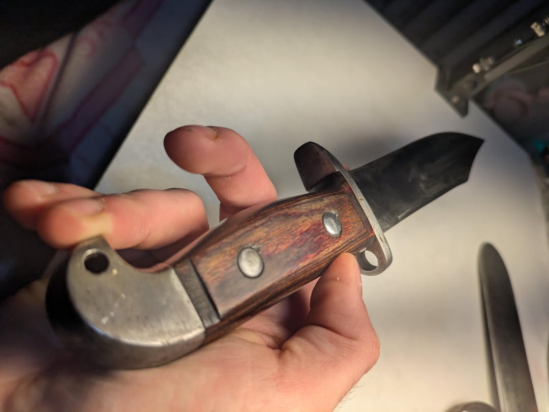 In KNIVES What have I bought? December 10, 2025 I picked up this blade at a local auction last weekend and paid around 70$ for it, can anybody ID the knife and tell me if I overpaid? Btw I bought it cuz I thought it looked cool along with its metal sheath.by pOiUyT123789 KnifeKnives Prev Post What have I bought? December 10, 2025 Next Post Restaurateur Humpday Carry December 10, 2025 Related Posts We Ryson in action January 16, 2026 A little bit of a NKD for me. Wehr Allie inset. Fantastic knife. Great user spec January 16, 2026 A little bit of a NKD for me. Wehr Allie inset January 16, 2026Write A CommentYou must be logged in to post a comment.