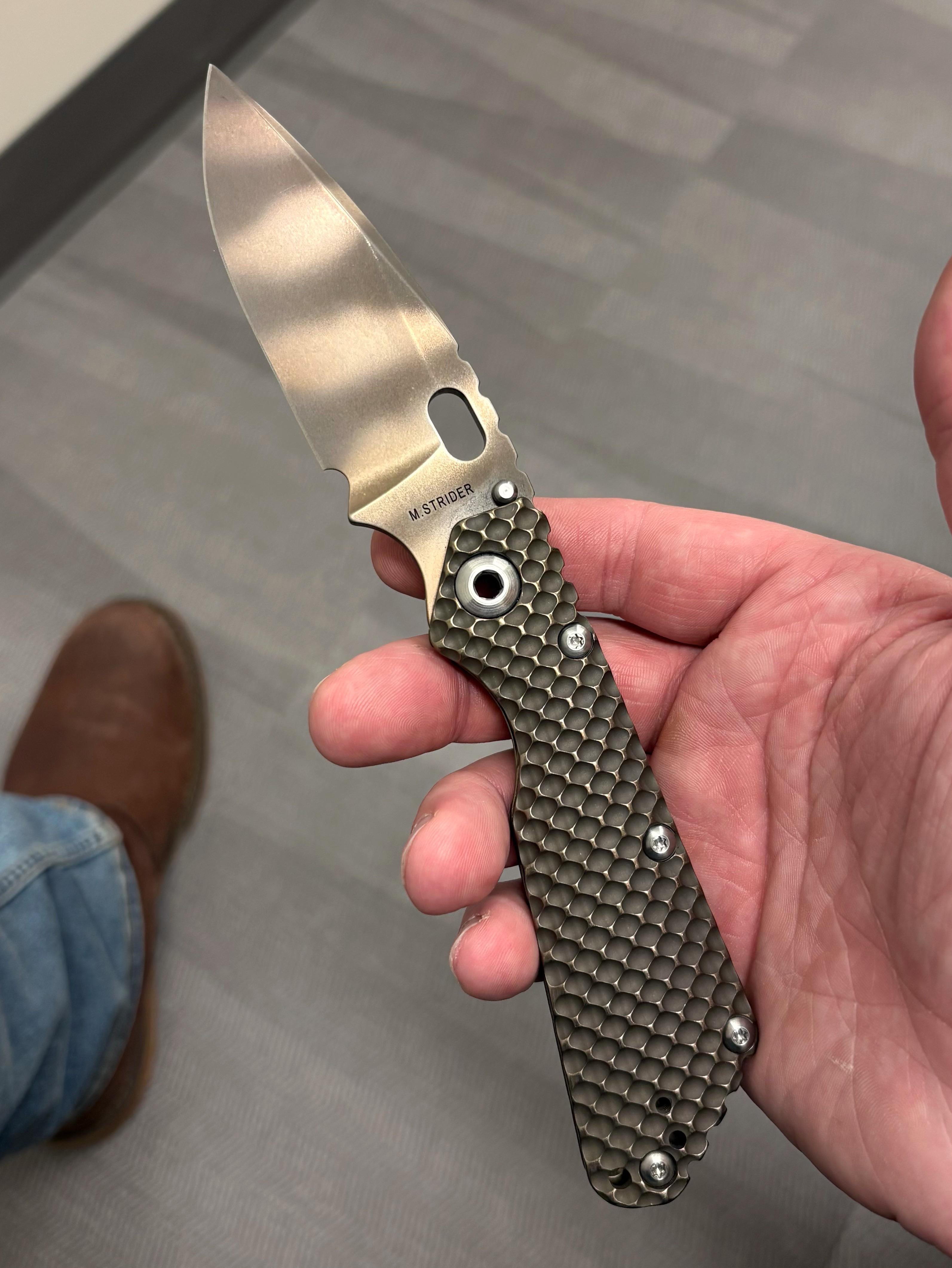 In KNIVES NKD: Strider SMF December 11, 2025 Just got this bronze Ti DGG Strider SMF with ghost flamed blade. Perfectly centered, no detent or pivot lash, no lock rock, and smooth as butter.by d_c_d_ KnifeKnife ClubKnives Prev Post Xtouc Seed and Spinnaker Haas for Thursday December 11, 2025 Next Post NKD Quiet Carry Drift C December 11, 2025 Related Posts Spyderco Native 5LW M4. 64.0 HRC January 16, 2026 We Ryson in action January 16, 2026 A little bit of a NKD for me. Wehr Allie inset. Fantastic knife. Great user spec January 16, 2026Write A CommentYou must be logged in to post a comment.