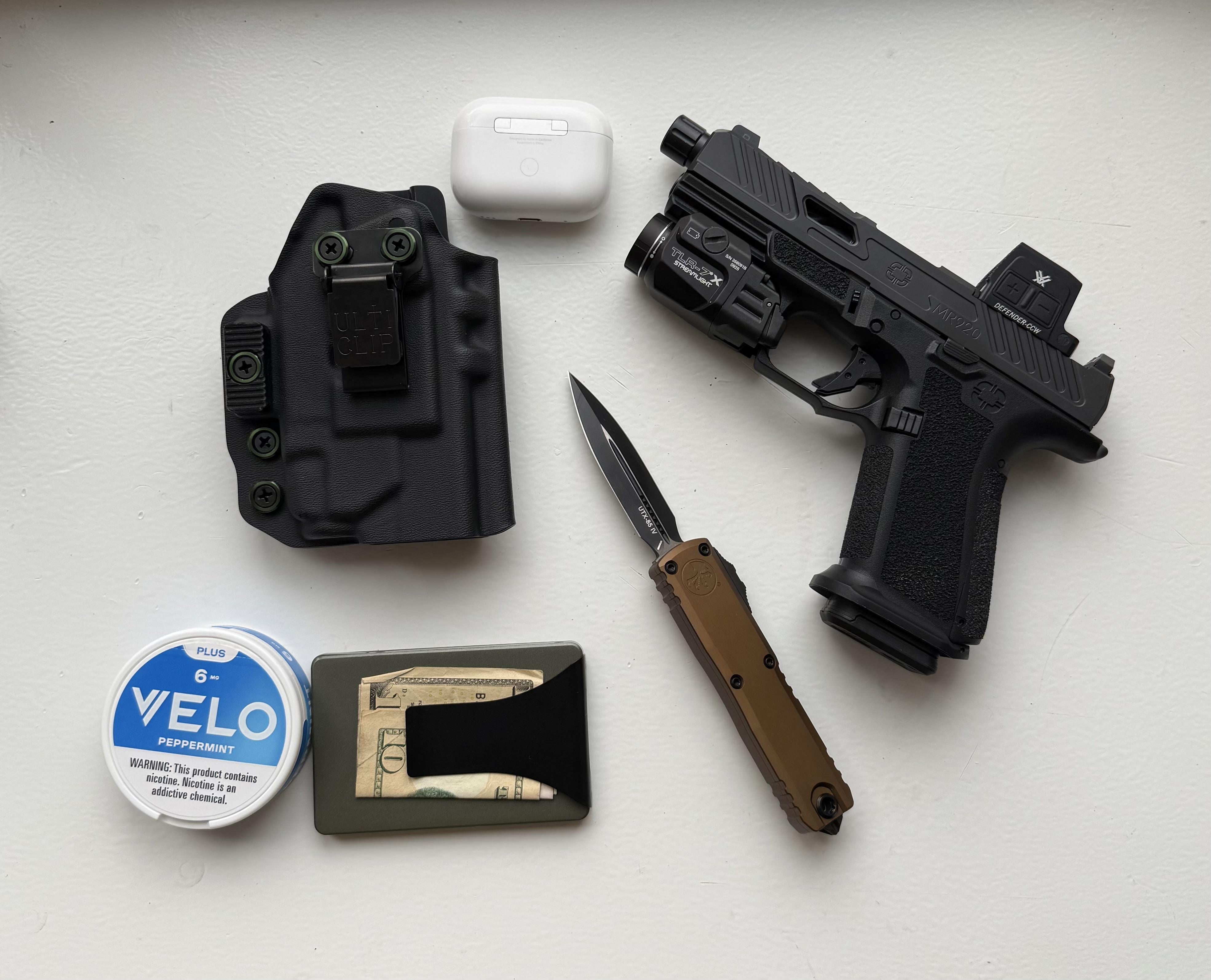 In EDC My EDC December 12, 2025 MR920 / Hilliker with ultituck / AirPods / Microtech / Wallet / Velo (down to 6mg from 9mg lol)by straightupgman EDC Prev Post Here’s my fog-day carry. Now c’mon, show me what you’re packing (knife-wise, obviously). 🤨 December 12, 2025 Next Post Norlund Deep River Knife Wanted December 12, 2025 Related Posts Actual EDC and slightly extended EDC January 15, 2026 Cheap off day EDC January 15, 2026 3rd Shifter January 15, 2026 2 Comments AutoModerator 1 month ago Thank you for posting to r/EDC! Include a detailed item list (make/model) within **1 hour** of submission. Lists can go in the title, a comment, or the image. Posts without lists will be removed. If you have already provided a list, not further action is needed, thanks | [FAQ](https://www.reddit.com/r/EDC/wiki/faq)*I am a bot, and this action was performed automatically. Please [contact the moderators of this subreddit](/message/compose/?to=/r/EDC) if you have any questions or concerns.* straightupgman 1 month ago Can you guess my occupation?Write A CommentYou must be logged in to post a comment.