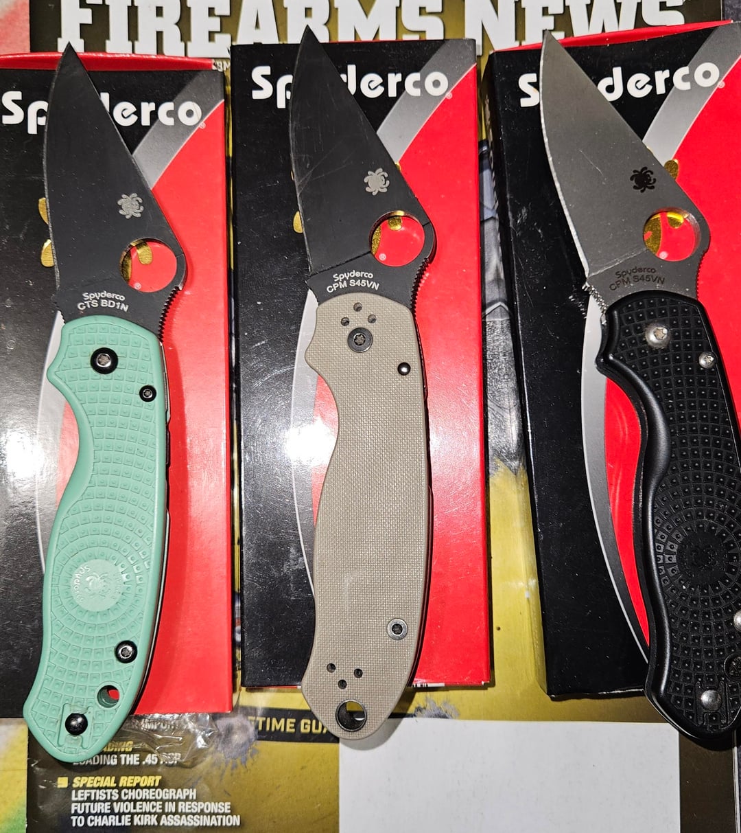 In KNIVES Three Spyderco’s given to me by a very dear friend! December 12, 2025 The gentleman that gave me these is a very good friend and got tired of seeing me with sub par steel, couldn't be more appreciated! They are my EDC's now.by Low-Consequence-5586 KnifeKnives Prev Post One of those iconic knives that never go out of style December 12, 2025 Next Post Bark river pig sticker I bought for my hunting trip in March. December 12, 2025 Related Posts Hinderer XM-18 3.5″ Skinner January 17, 2026 Laser engraving? January 17, 2026 NKD Brown Cortex XL January 17, 2026 2 Comments Master_Ad236 1 month ago You have a very nice friend! pickleliks888 1 month ago I’ll be the first: does he want more friends???Write A CommentYou must be logged in to post a comment.