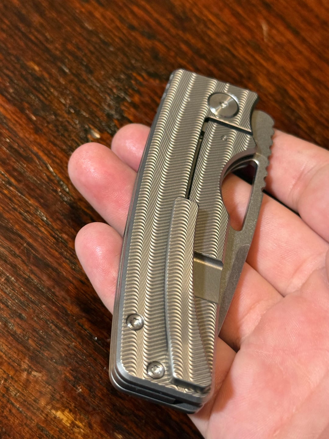 Fake. I don’t think Oz ever made this config in the standard size to my knowledge (but Jufule did). Weight should be sub 3oz on milled models.