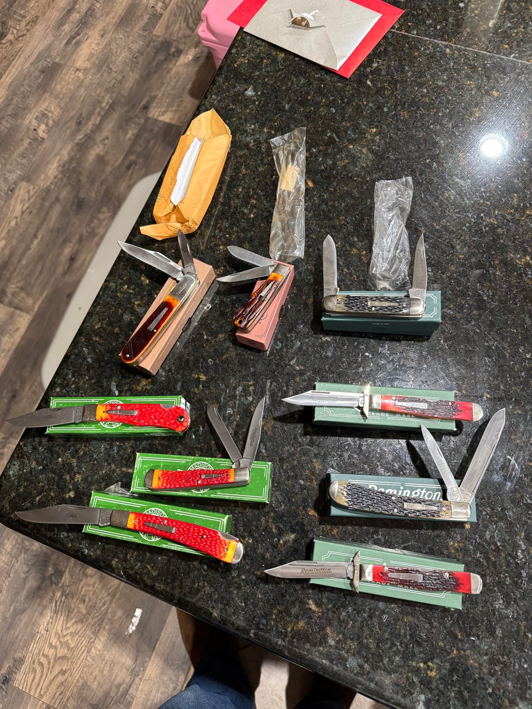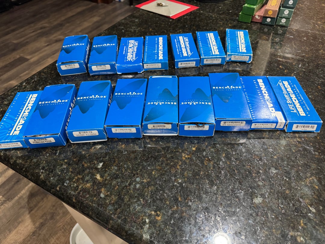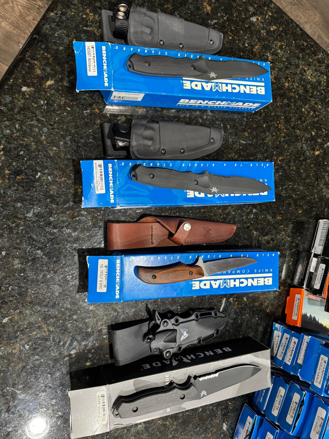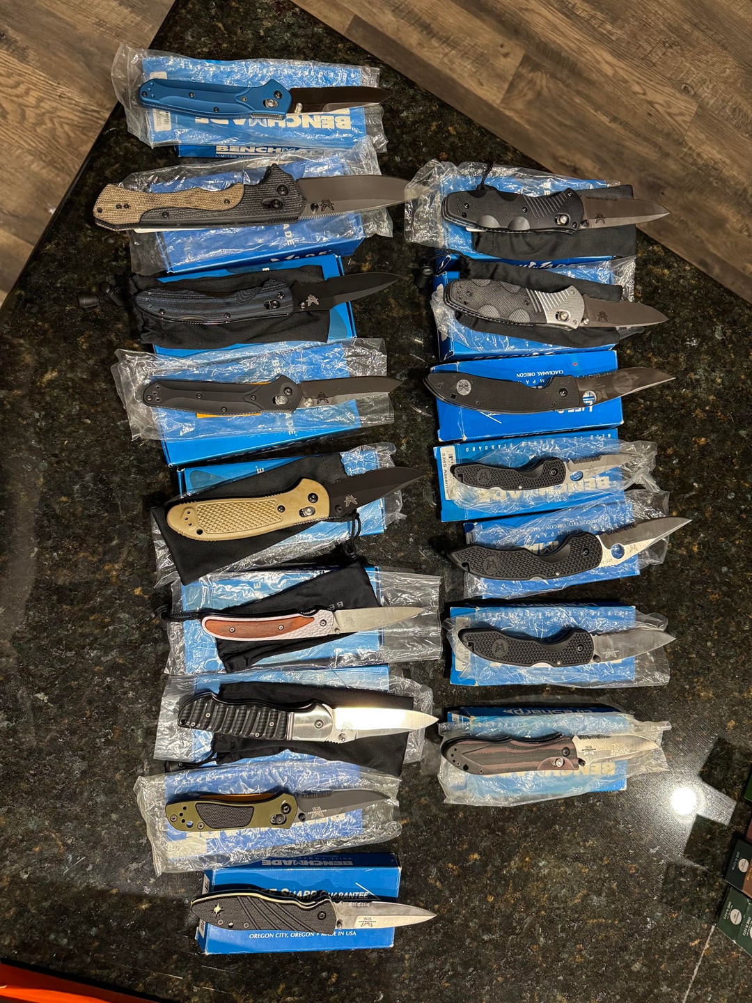Hey again, first off I want to thank everyone that left their condolences and/or advice. I appreciate it greatly. That being said this post if for everyone who wanted to see the knives open. I have them separated by Benchmade folders, Benchmade collaborations, Benchmade fixed blades, Remington, and then misc knives.