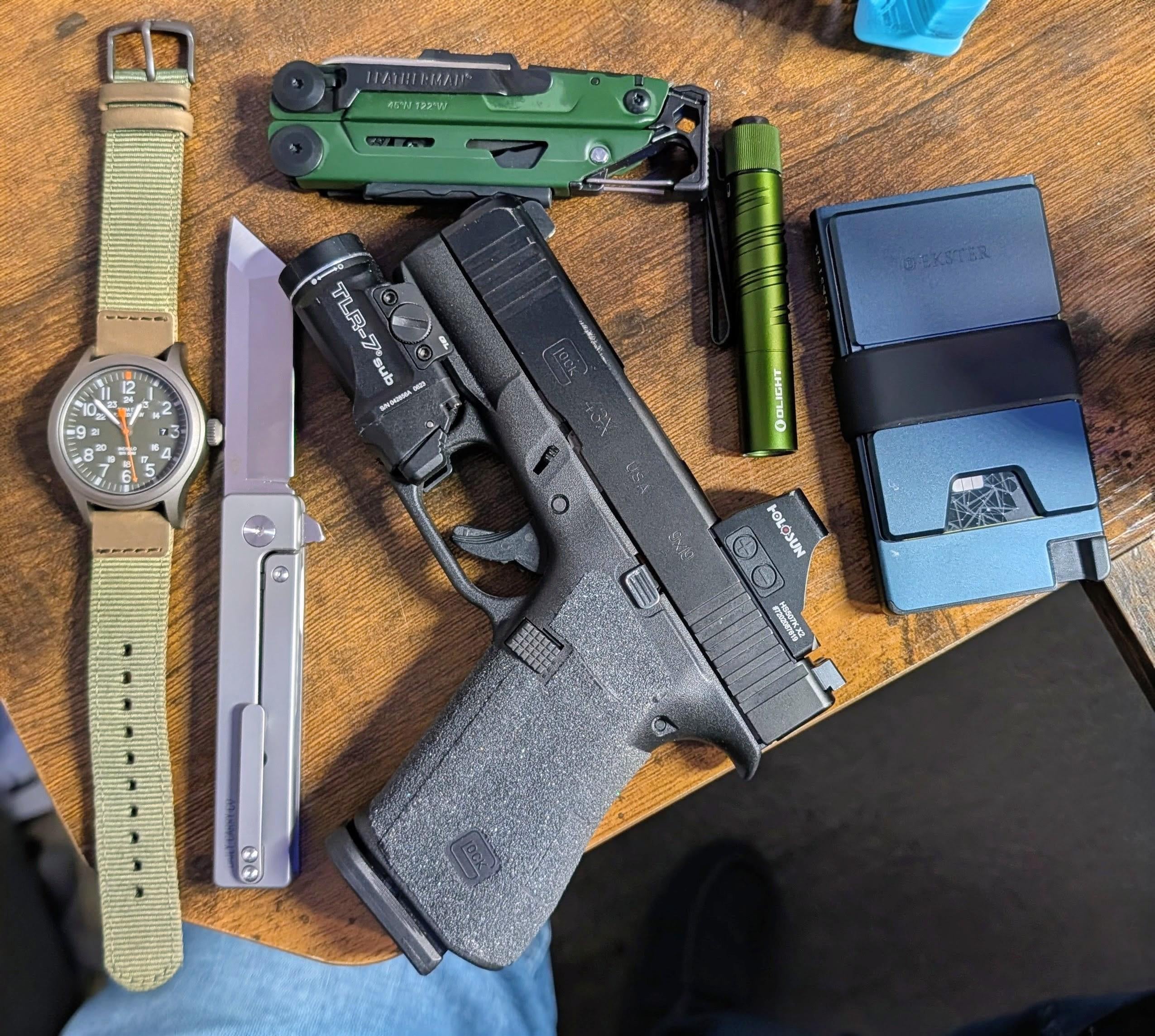 In EDC My Everyday Carry for now… December 14, 2025 Timex Epedition Scout Leatherman Signal Olight i5T EOS Vanguard Titanium Flipper Knife Glock 43X MOS Ekster Cardholder Proby keepittechie EDC Prev Post Sunday Coffee Trip Carry December 14, 2025 Next Post (NLD) Oclip x1 vs oclip pro. Initial thoughts/mini review December 14, 2025 Related Posts Regular work carry January 16, 2026 Titanium in my pocketses January 16, 2026 Leather sheath for the Soddy January 16, 2026 1 Comment AutoModerator 1 month ago Thank you for posting to r/EDC! Include a detailed item list (make/model) within **1 hour** of submission. Lists can go in the title, a comment, or the image. Posts without lists will be removed. If you have already provided a list, not further action is needed, thanks | [FAQ](https://www.reddit.com/r/EDC/wiki/faq)*I am a bot, and this action was performed automatically. Please [contact the moderators of this subreddit](/message/compose/?to=/r/EDC) if you have any questions or concerns.*Write A CommentYou must be logged in to post a comment.