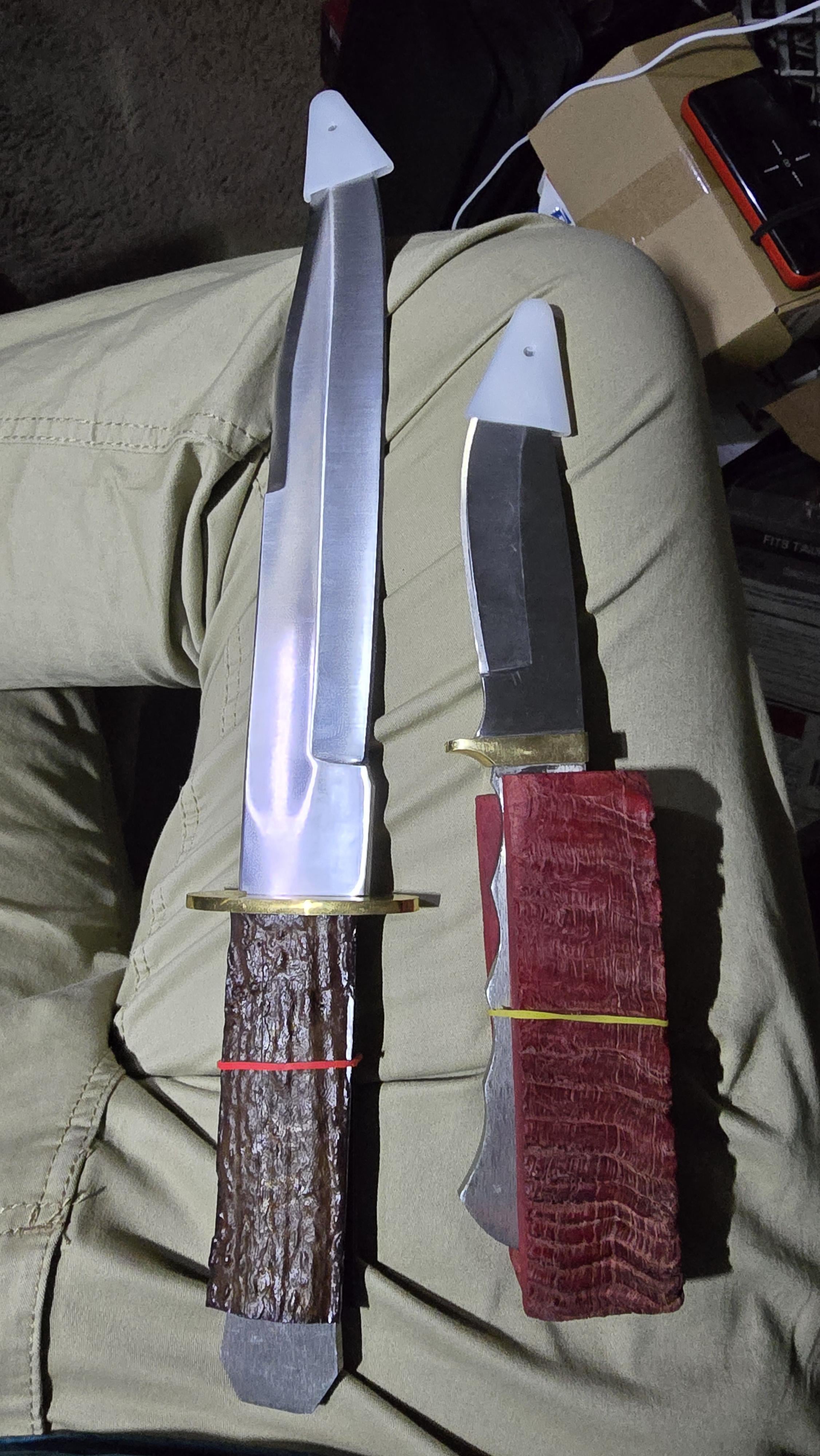 My question is which knife should the red scales go to? Theyll cover the tang more.