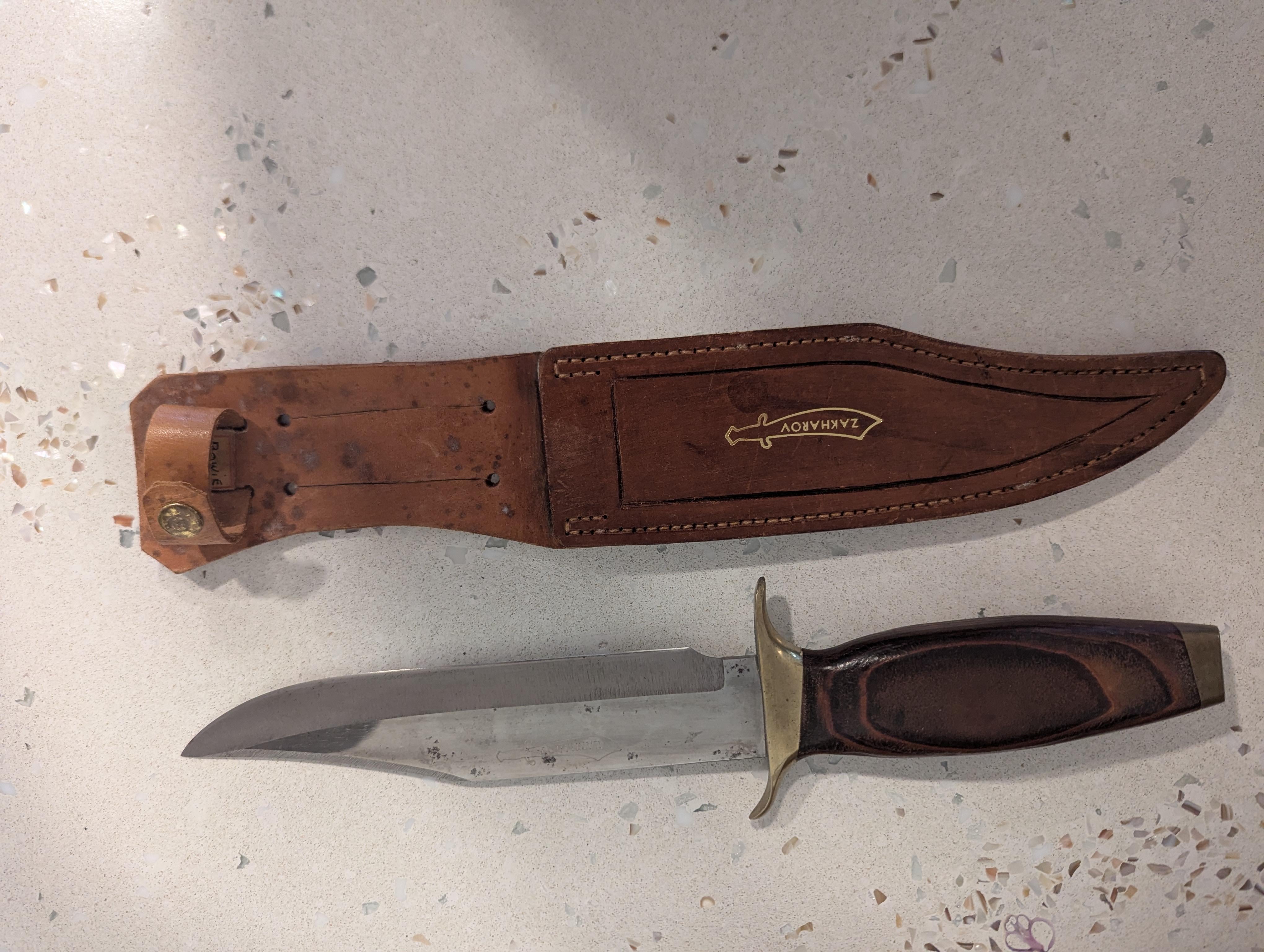 Can someone help me identify this? I'm moving soon and I have to downsize, and I'm not sure if I should keep it as a camping knife, or take it to an antique shop, or just give it to someone. Someone gave it to me years ago, and I have no idea of its background. Thanks.