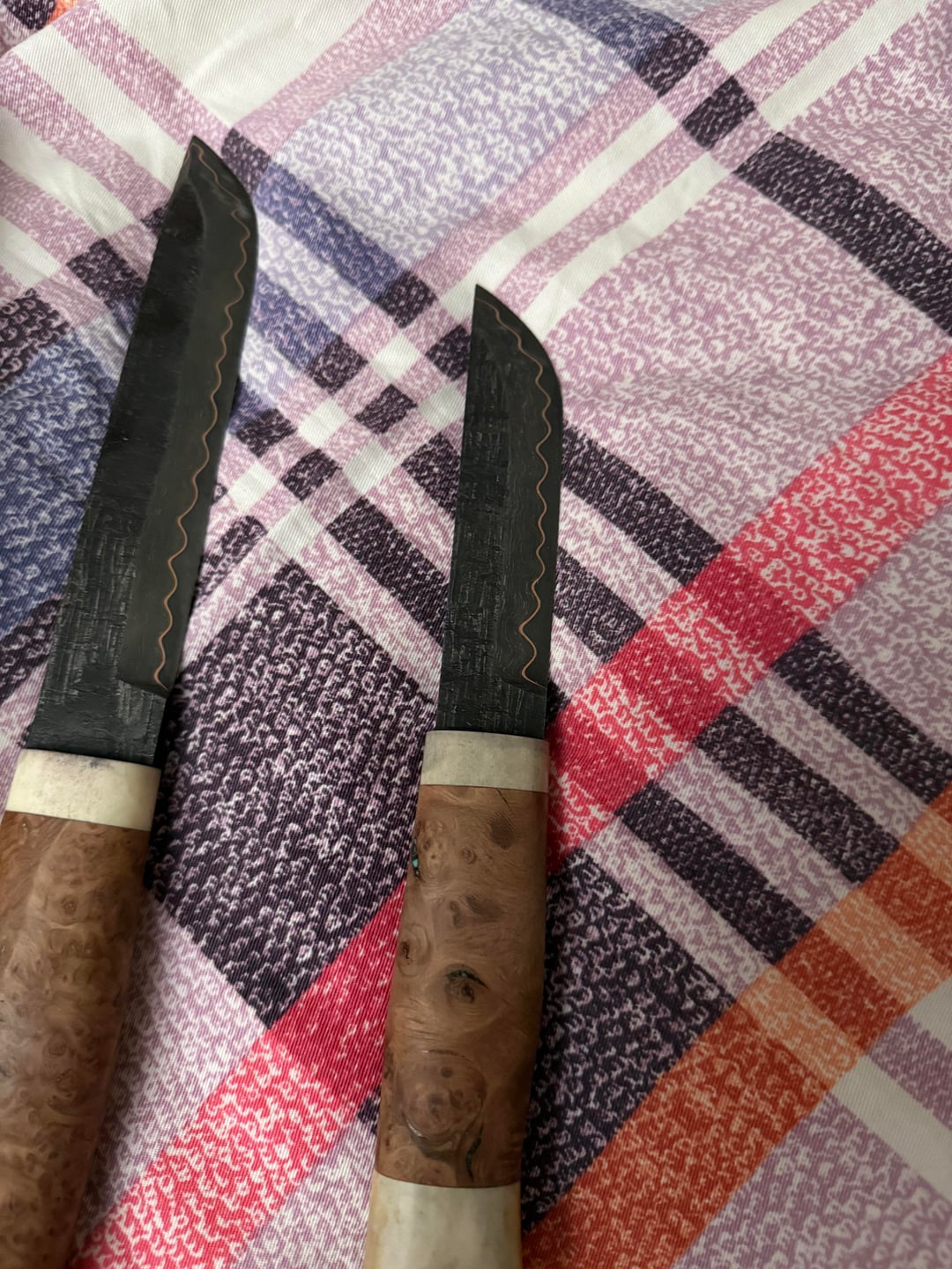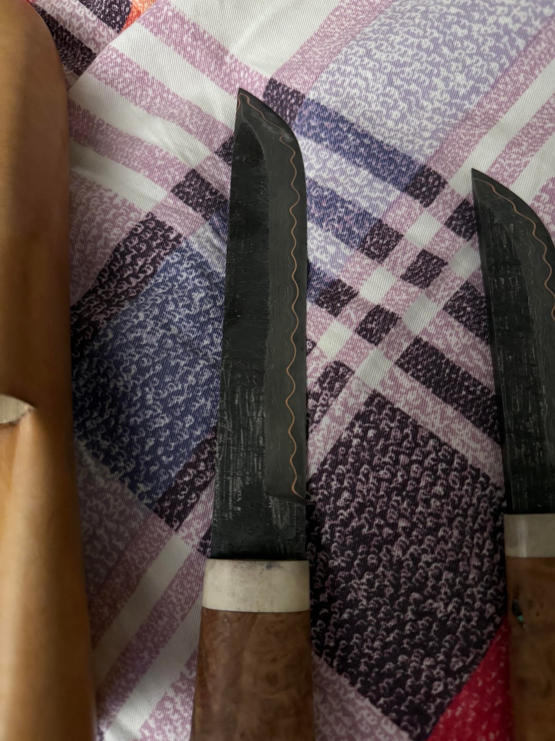 Got 2 new custom knives from a knife maker in China, 5 layer Cumai 1095 core with copper wrapped in 1095/15n20 Damascus. Haven’t had a chance to put them to the test but they definitely look amazing, came with the fattest burr on the edge I’ve ever seen but once I got it off its razor sharp. I think copper melts below forge welding temperature so how good are these cumai Damascus knives? Is it just gotta split apart layers on me? if any of you have experience or knowledge on this please share your thoughts. I’ve had a mora garberg as my main knife, how well would it stack up to that?