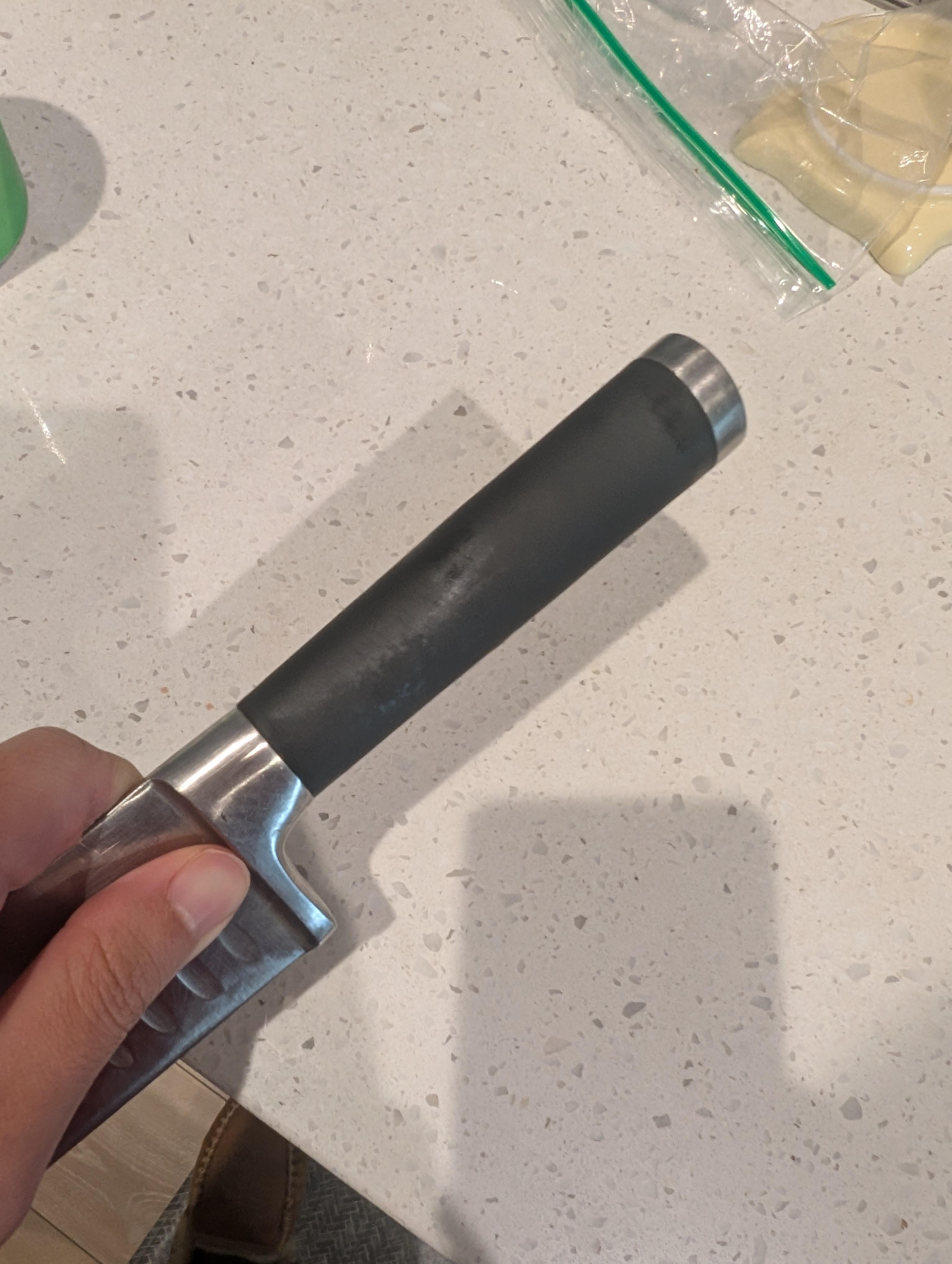 One thing to note, this knife is probably 20 years old. Could the rubber just be wearing down and this is a side effect?