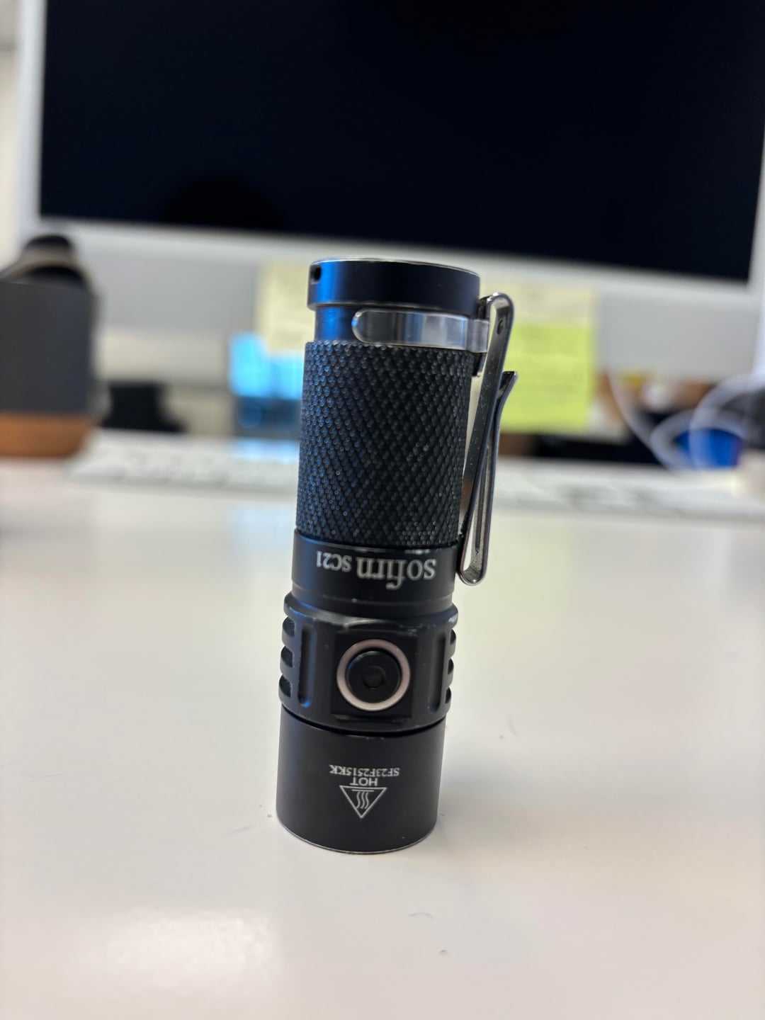 For years I daily carried a Maratac AAA, which was fine, but I wanted something rechargeable. I found this SC21 in Feb 2024 and it’s been a good pocket flashlight. I really like the magnetic end, and the two-way pocket clip is also useful. If I’m traveling, the light fits nicely in my AER CPP2 without taking up too much room.