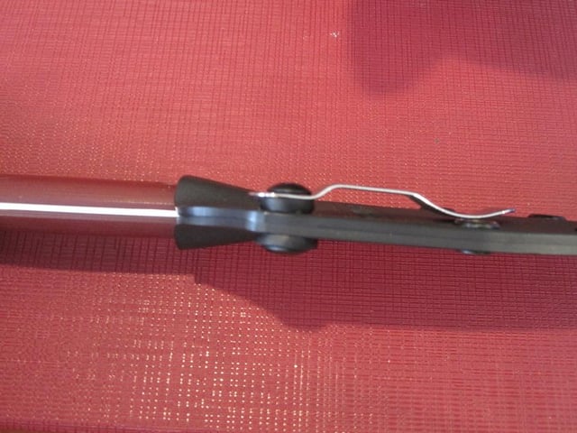 Got some UltiClips and extra hardware to try out a while back, turns I hate Ulticlips for knives (I'd rather pull the sheath out easily and then unsheath the knife, and be able to reclip the sheath easily). I used one of the long screw bolts and a couple of rubber spacers to mount this pocket clip from a Byrd Robin. The spoon of the clip doesn't actually touch the sheath, I can slide a couple sheets of paper under it, which is good because I don't want it tensioning and bending the sheath (the Kydex is more on the soft and grippy side).