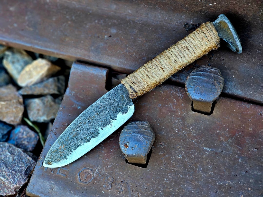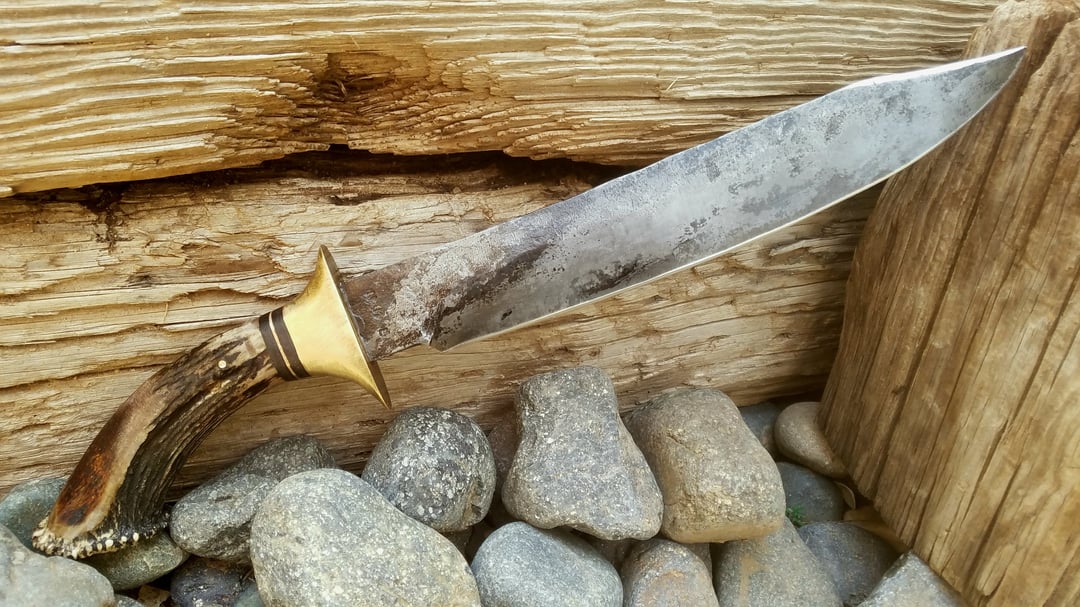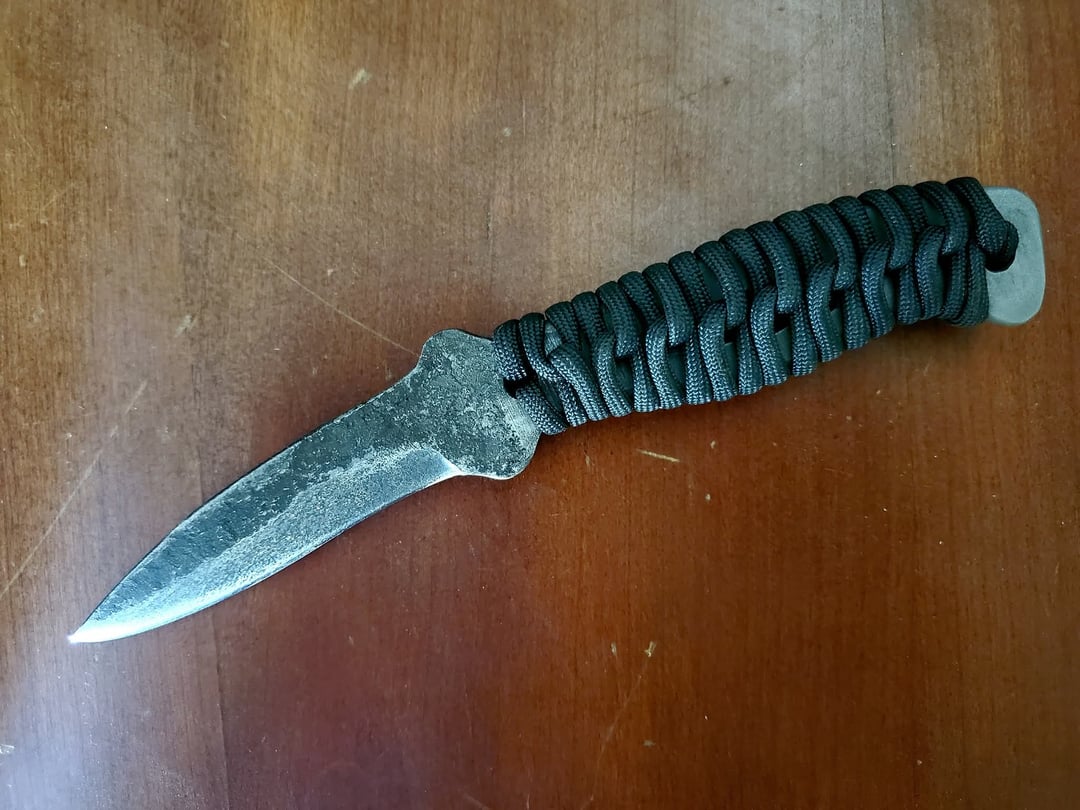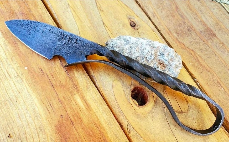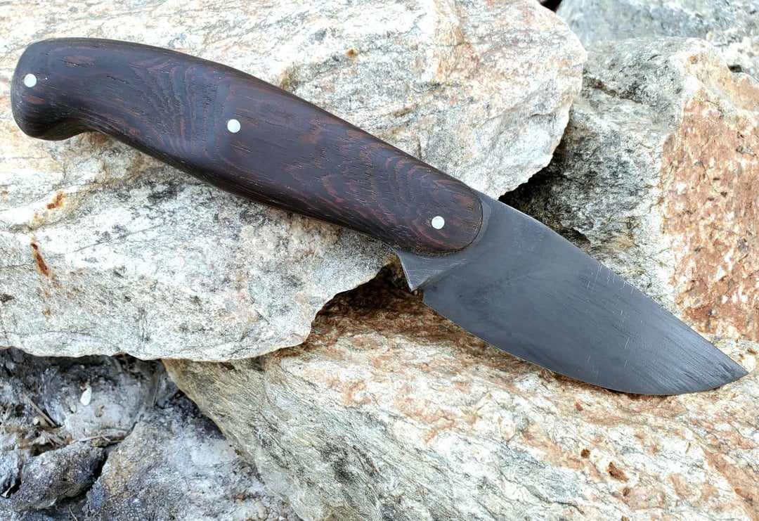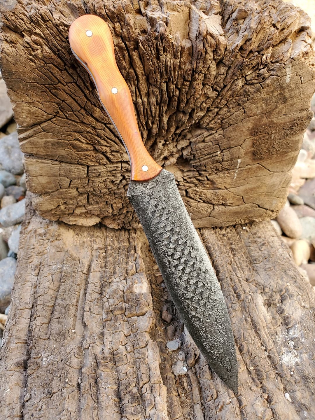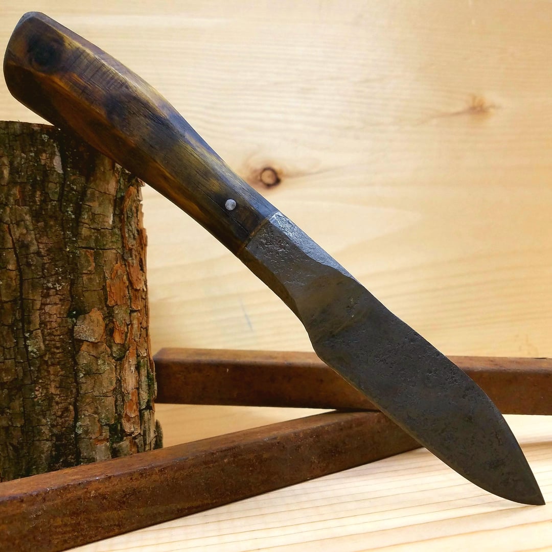 I have been bladesmithing off and on since 2009, and making knives since the early 2000s. These are just a few examples of some of my more recent work. As you can see, I love the rough, gritty, brut-de-forge aesthetic. I also do leather work, and I tend to say that it is fairly post-apocalyptic in appearance, which goes well with the kind of knives I like to make.