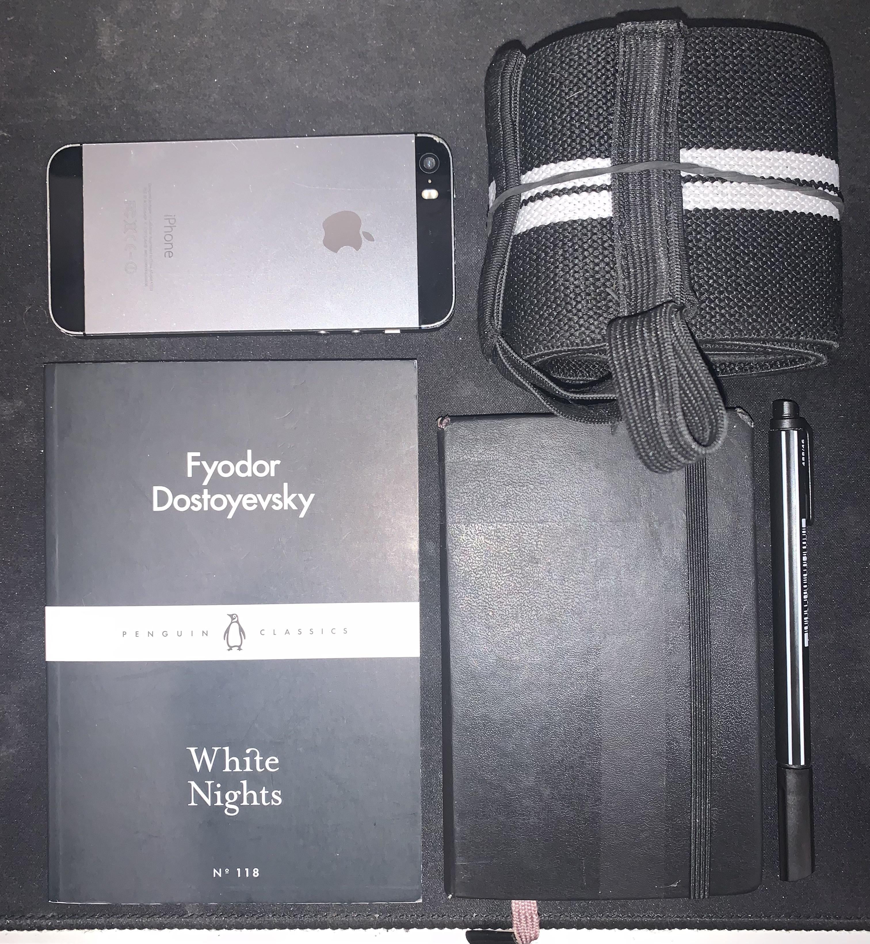 In EDC Pocket dump before the gym December 16, 2025 (Left to right top to bottom) iPhone 5s • wrist wraps • Dostoyevsky’s White Nights • Moleskine 9×14 ruled notebook • Stabilo pointMaxby luxurious-tar-gz EDC Prev Post Loving lightweight linerless lockbacks lately December 16, 2025 Next Post I like black blades and I cannot lie…. December 16, 2025 Related Posts Mom of 3 EDC January 15, 2026 EDC in public transportation January 15, 2026 Today’s Pocket Dump January 15, 2026 2 Comments AutoModerator 4 weeks ago Thank you for posting to r/EDC! Include a detailed item list (make/model) within **1 hour** of submission. Lists can go in the title, a comment, or the image. Posts without lists will be removed. If you have already provided a list, not further action is needed, thanks | [FAQ](https://www.reddit.com/r/EDC/wiki/faq)*I am a bot, and this action was performed automatically. Please [contact the moderators of this subreddit](/message/compose/?to=/r/EDC) if you have any questions or concerns.* TacticalDesire 4 weeks ago Using a 5s in 2025 is a feat.Write A CommentYou must be logged in to post a comment.
