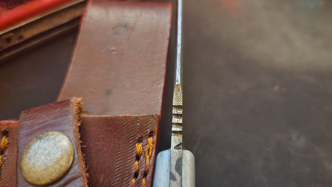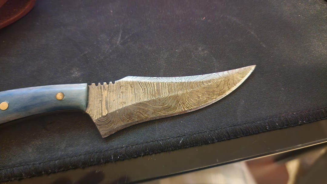 I got this knife for $80 at a gun show years ago. Guy said he hand makes them. I used to have his business card with his website, but I lost it. I remember checking out the website and it seemed legit. Had pictures of similar knives. There's no branding on this thing anywhere. Definitely not taken care of and could use a clean up, but it's a neat looking knife. After doing some research I now realize that there's the possibility that it's a piece of shit.