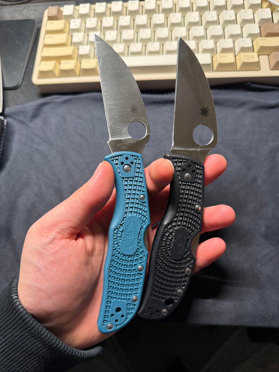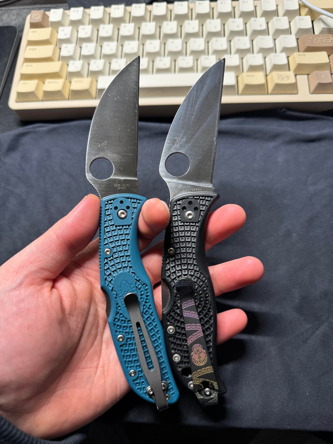 My favorite box cutters at work. I’ve posted about concerns of the k390 Endela rusting but still debating on whether to vinegar or ferric chloride wash it or not. On days that I know can get wet I carry the RockJumper in VG-10 for peace of mind.