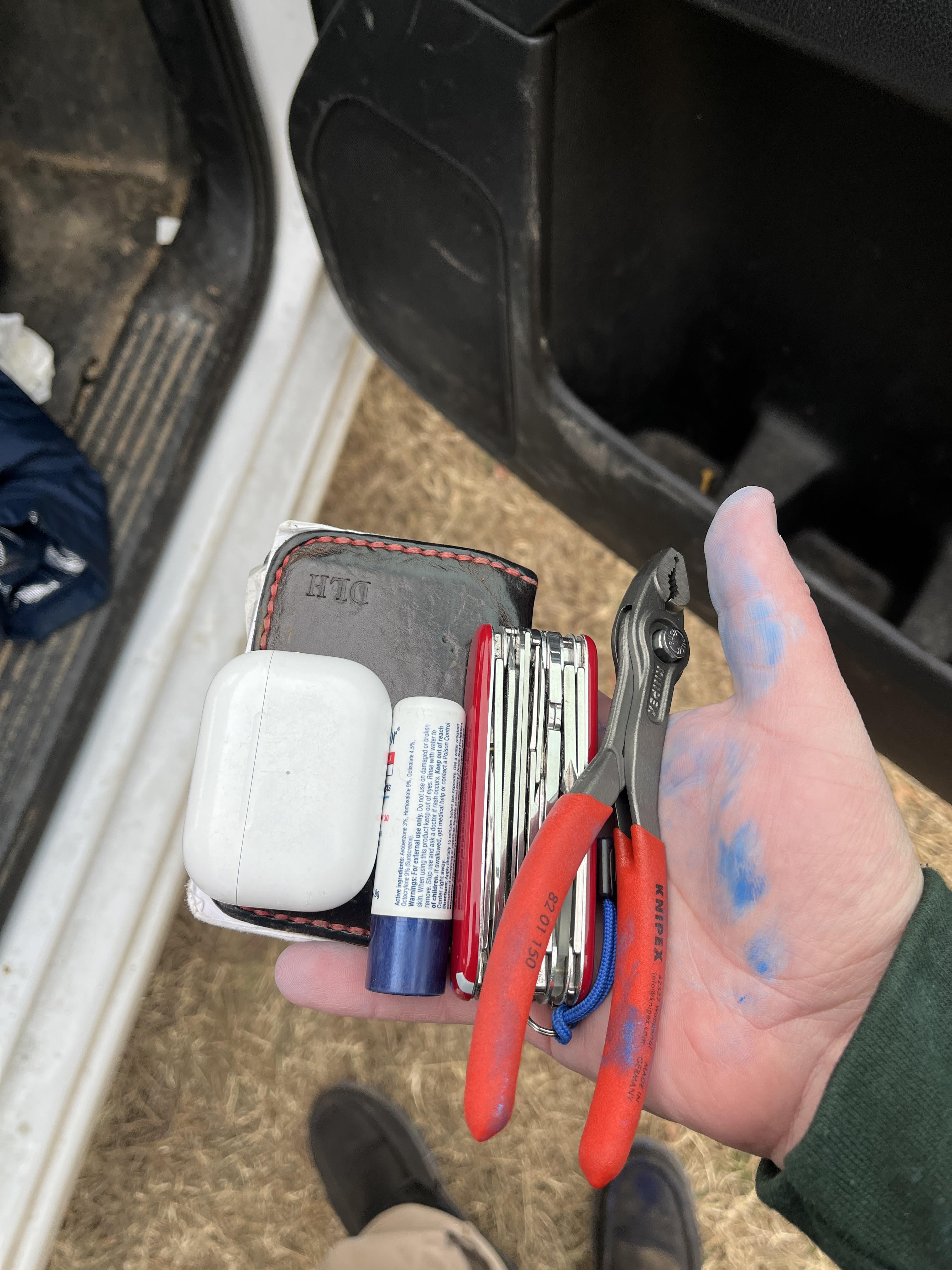 In EDC Actually got to use these pliers today December 17, 2025 Knipex 6 inch twin grip Lip balm Wallet Swiss champ Airpodsby Booksandcards EDC Prev Post Which one should I carry today? December 17, 2025 Next Post Finally a usb C 16650 December 17, 2025 Related Posts K.I.S.S. January 14, 2026 Low Profile EDC January 14, 2026 Vacation carry January 14, 2026 1 Comment AutoModerator 4 weeks ago Thank you for posting to r/EDC! Include a detailed item list (make/model) within **1 hour** of submission. Lists can go in the title, a comment, or the image. Posts without lists will be removed. If you have already provided a list, not further action is needed, thanks | [FAQ](https://www.reddit.com/r/EDC/wiki/faq)*I am a bot, and this action was performed automatically. Please [contact the moderators of this subreddit](/message/compose/?to=/r/EDC) if you have any questions or concerns.*Write A CommentYou must be logged in to post a comment.