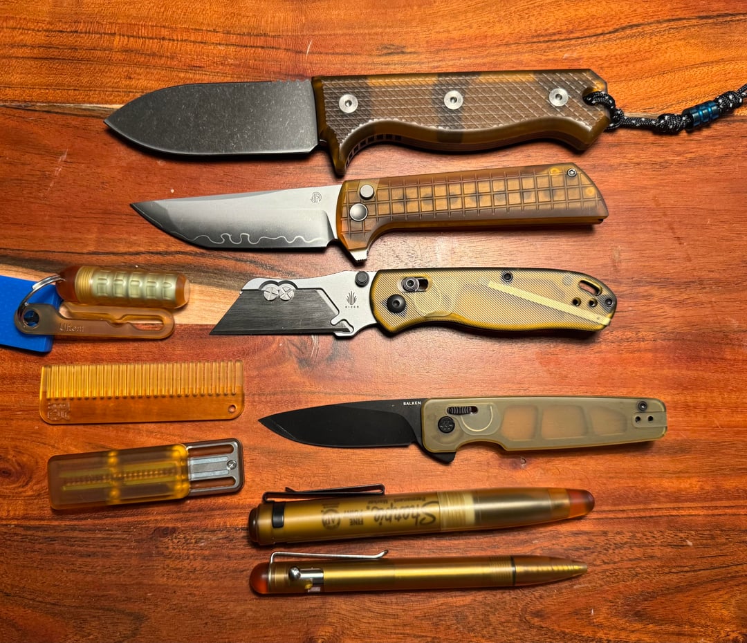Some say it looks like a full piss jug, others say a stained ashtray, I think it looks cool, retro futuristic and I love a transparent scale. Im looking for pry bars, multitools and flashlights that utilize Ultem/PEI in either the scales, enclosure or case design if you're aware of anything (I haven't found much).