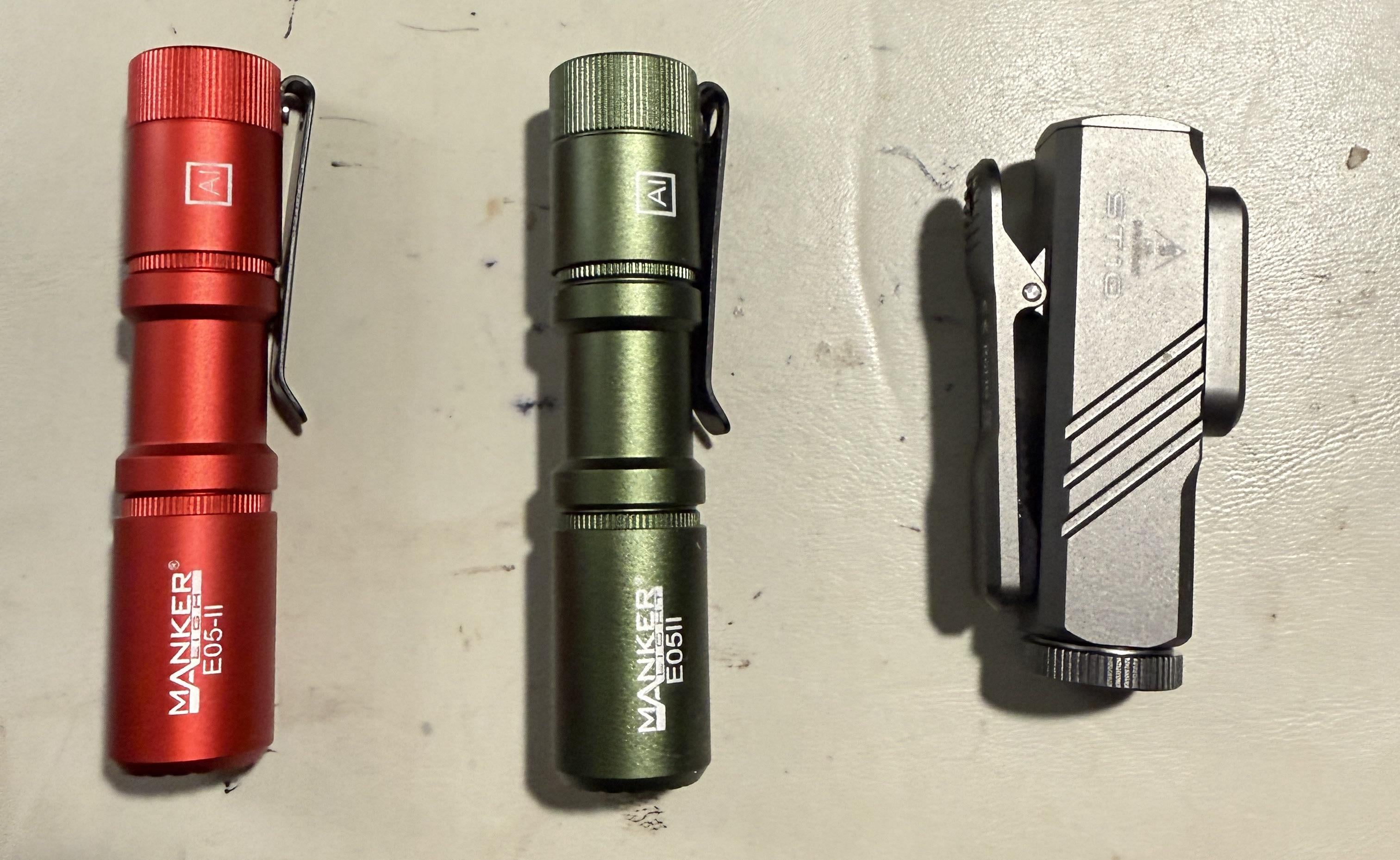 The Mankers are amazing. The fit and finish and tactical tail switch are great. The replaceable batteries and ability to use AA is amazing too. The Sofirn is in my opinion better than the oclips cuz it’s brighter, has the forward light and best of replaceable battery and ability to use AA.