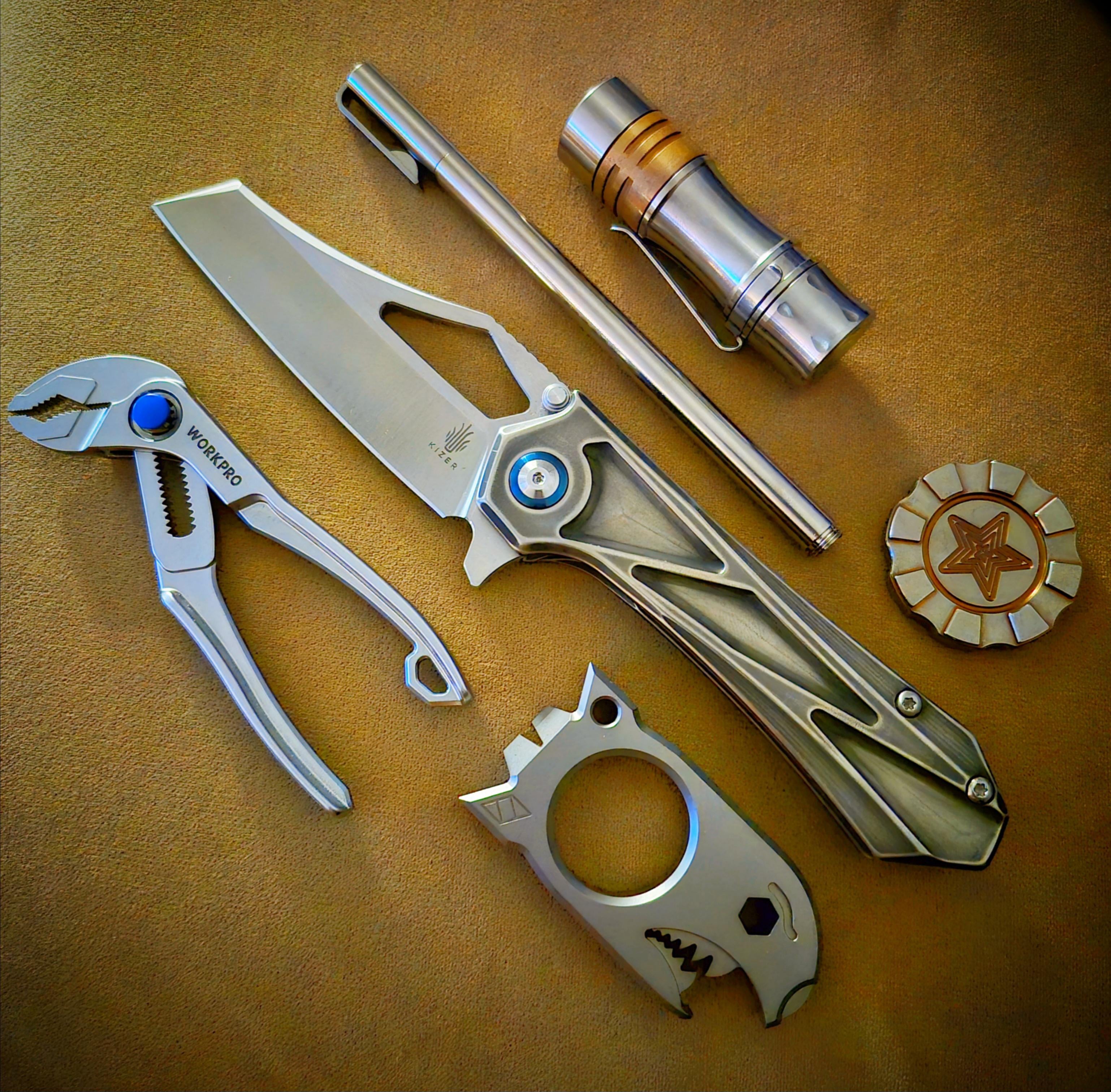 In EDC Ti EDC – Tools I carry to feel emotionally prepared December 19, 2025 Left to Right:Workpro 4in pliers.NotoriousEdc Beer bomb Ti bottle opener.Kizer Maestro titanium (personal distressed mod).Flytanium Bic Pen with Ti sleeve.Wurkkos TS10 Ti/Copper.Hitex gear chip Bronze Titanium. by Broteinpoder EDC Prev Post my first good knife :D kizer mini militaw December 19, 2025 Next Post Recovering from knee surgery so I am laid up carrying my whole collection. What are you guys carrying today? December 19, 2025 Related Posts Today’s frosty carry January 15, 2026 Updated Carry January 15, 2026 Thursday Carry. January 15, 2026 1 Comment AutoModerator 4 weeks ago Thank you for posting to r/EDC! Include a detailed item list (make/model) within **1 hour** of submission. Lists can go in the title, a comment, or the image. Posts without lists will be removed. If you have already provided a list, not further action is needed, thanks | [FAQ](https://www.reddit.com/r/EDC/wiki/faq)*I am a bot, and this action was performed automatically. Please [contact the moderators of this subreddit](/message/compose/?to=/r/EDC) if you have any questions or concerns.*Write A CommentYou must be logged in to post a comment.