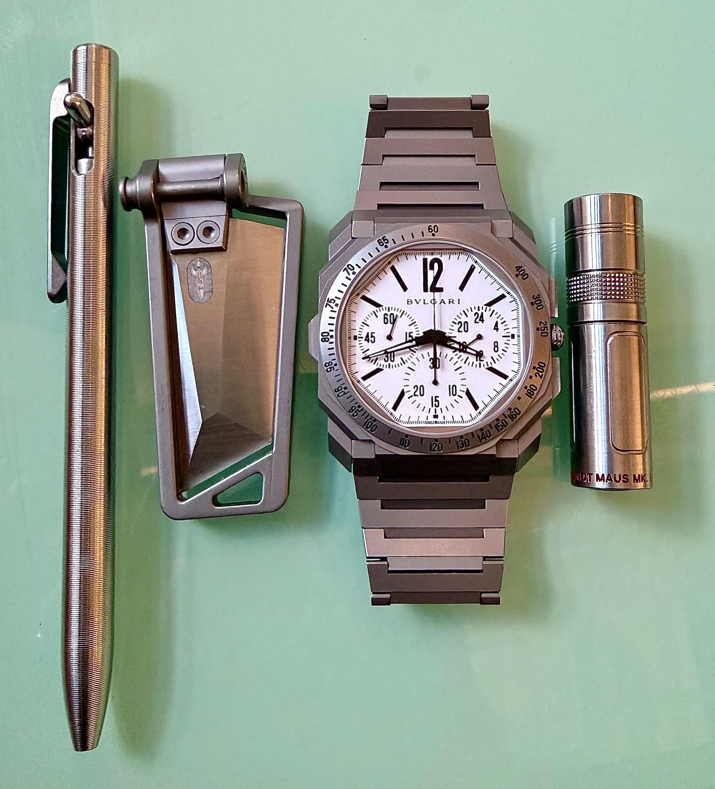 All titanium: Can’t have my pockets dragging me down when I’m trying to make a quick escape from the office.