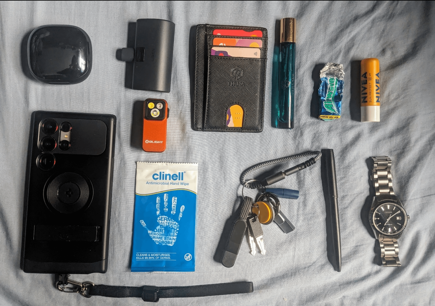 I usually carry it all in my jeans and jacket pocket
