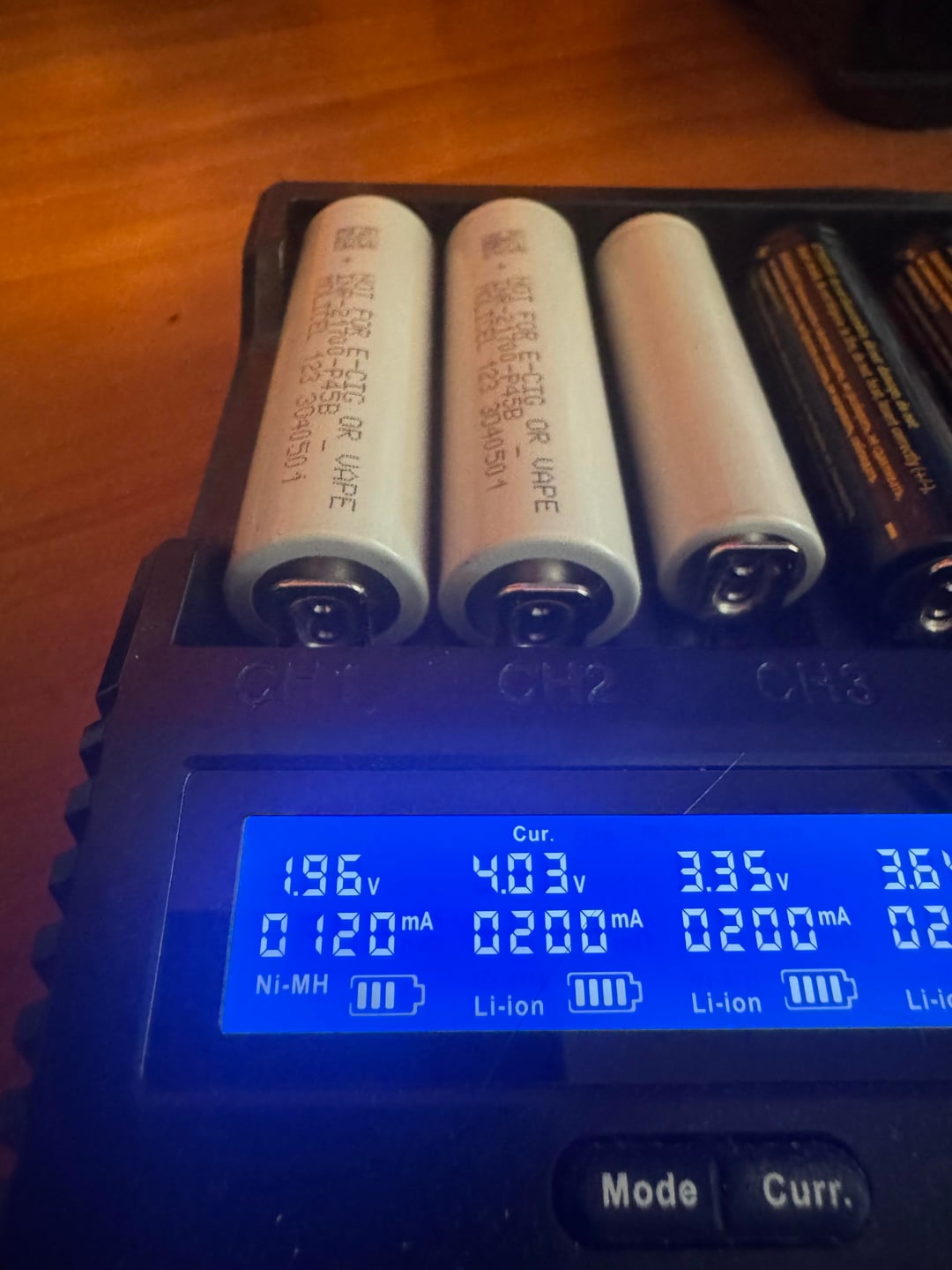 In Flashlight Molicel p45b reading as a ni-mh? December 20, 2025 First battery from the left, using a xtar vc8. Uncomfortable charging this battery, so I’ve set it to the side for now. Has anyone ran into this problem?by PhoconDavis flashFlashlightlight Prev Post What dost thou carry in thy pouch this fair Saturday morn? December 20, 2025 Next Post Hogue EX-A05 December 20, 2025 Related Posts TD11 – Tint (DUV) adjustment of the sidelight with Minus Green January 14, 2026 (NLD×2) Acebeam E75 (with DC-Fix) + Wurkkos TS26S – Fireflies E07X V2 / L50-Sol (with DC-Fix) comparison🔦🫘 January 14, 2026 Planning to buy my first Convoy (T6 vs T3) January 14, 2026 3 Comments Interconnectivity000 4 weeks ago I wouldn’t use that cell, considering that it’s been discharged below 2.5v. C-Slaughter 4 weeks ago I think you can go to that slot and change it to Li-ion, but it supposed to do it automatically 🤨 pan567 4 weeks ago I would retire that cell immediately due to severe overdischarge.Write A CommentYou must be logged in to post a comment.