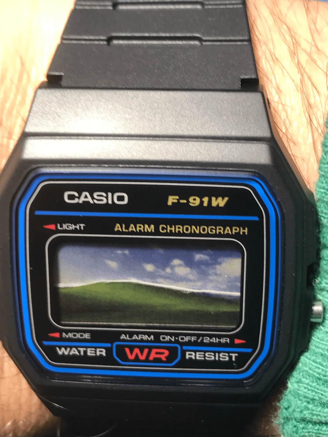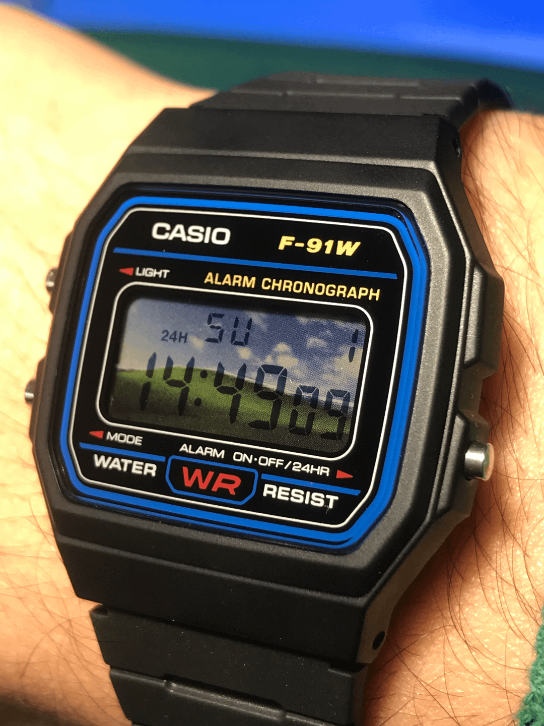 I removed the back reflector foil of the Casio F91W display and layered the hill on top of the sky using tiny spacers. It gives it a cool 3D effect in person. I actually just put a few up on my site if you want to check the details (link in bio), but it’s a fun DIY if you have a steady hand with an X-Acto knife!
